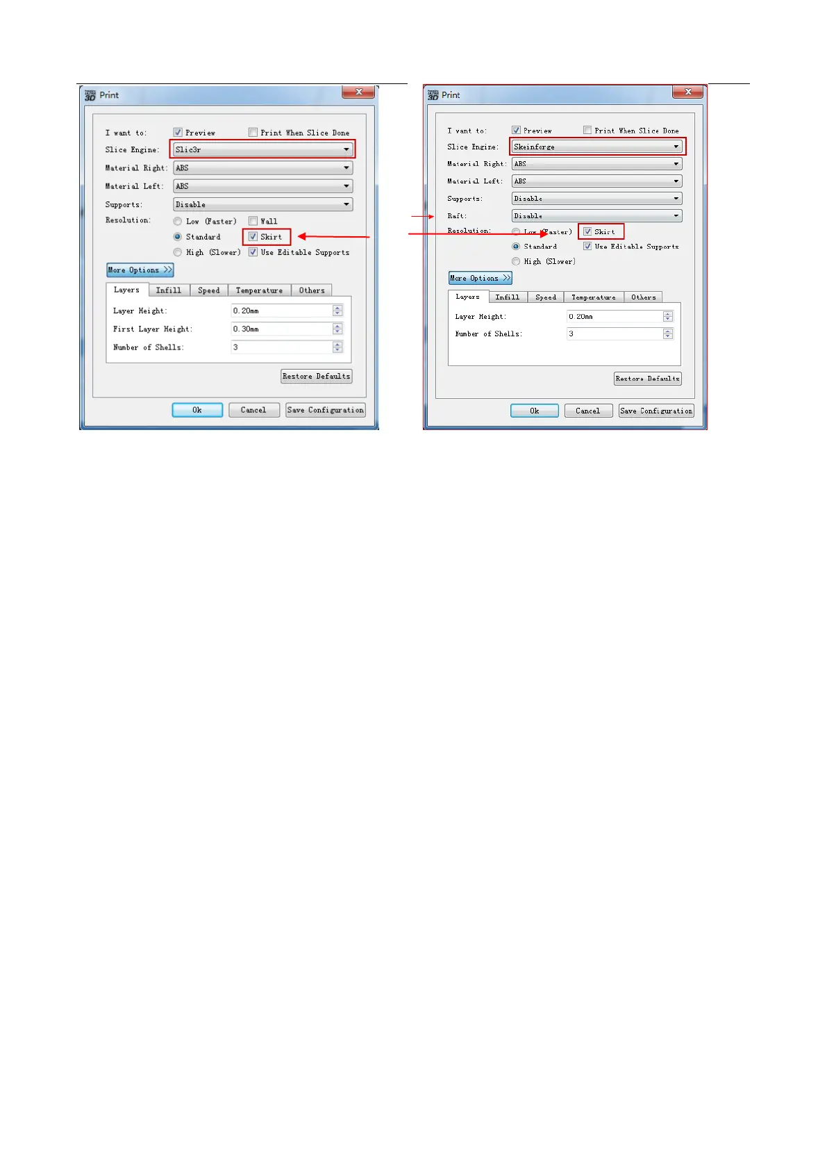 extrusion print. (Note: Skeinforge does not have this function. This function can’t be used with Skirt