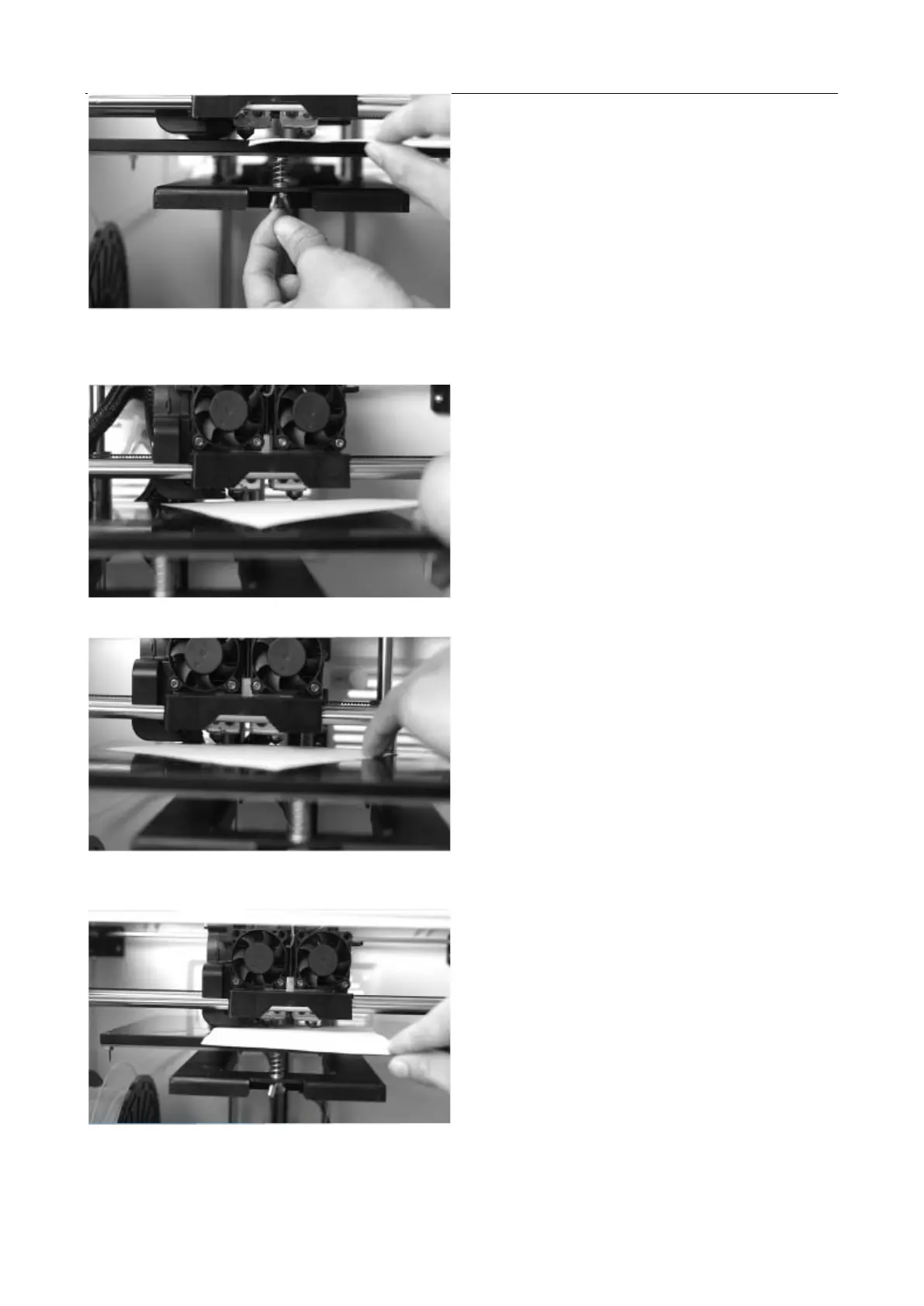 Press [ NEXT ]. The nozzle will move to the center of the build plate. Slide the paper through to make sure there