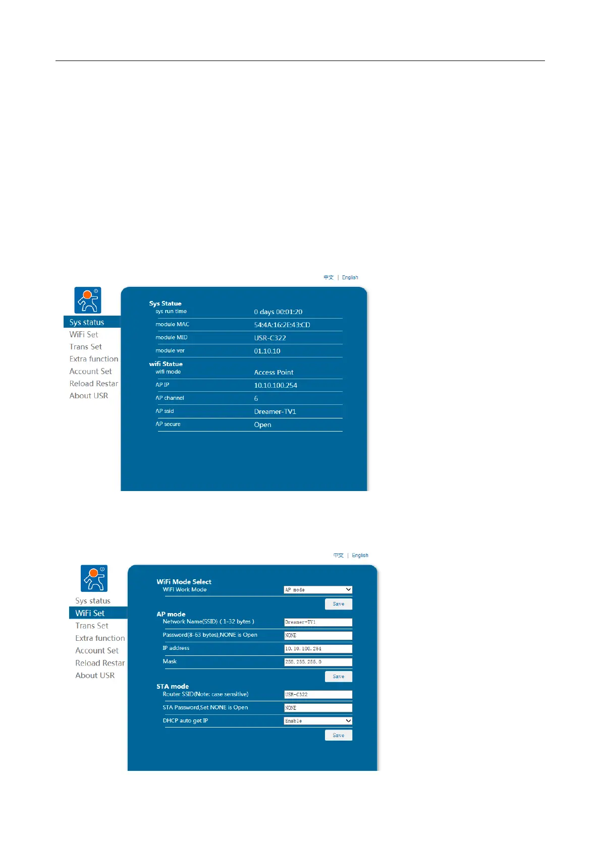 mask. Then set up WIFI mode as AP mode, click on Save and reboot and will be set successfully.