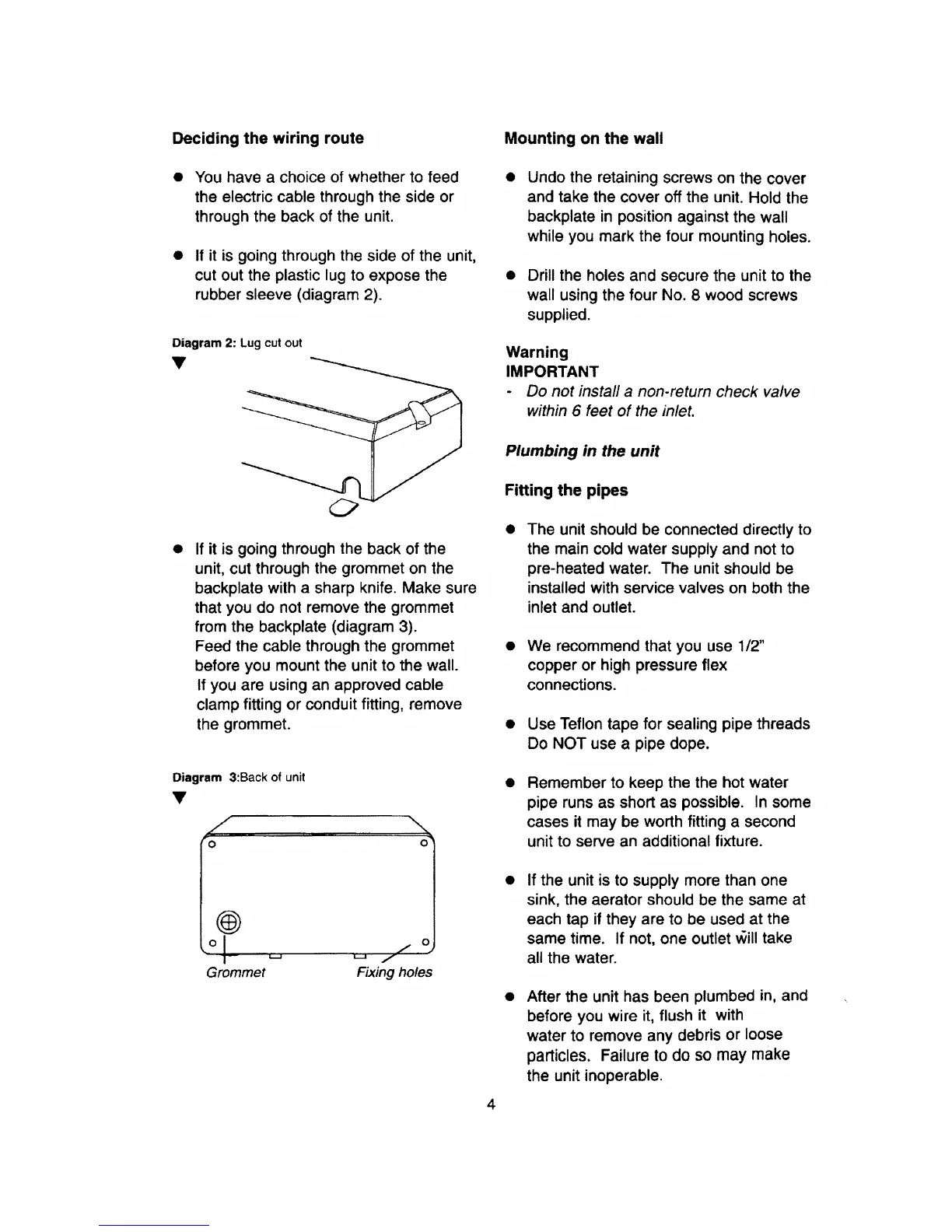 PowerStar AE9.5 - Deciding the Wiring Route; Mounting on the Wall; Plumbing in the Unit; Fitting the Pipes