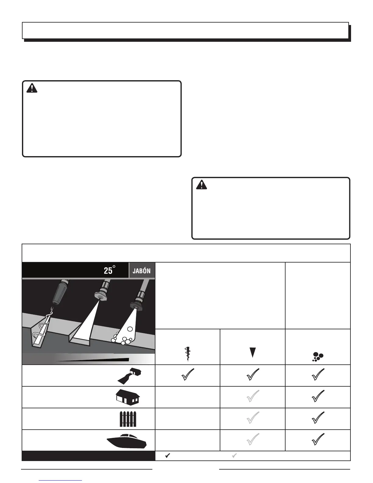 Boquilla recomendada Usar con cuidado en ciertas aplicaciones
