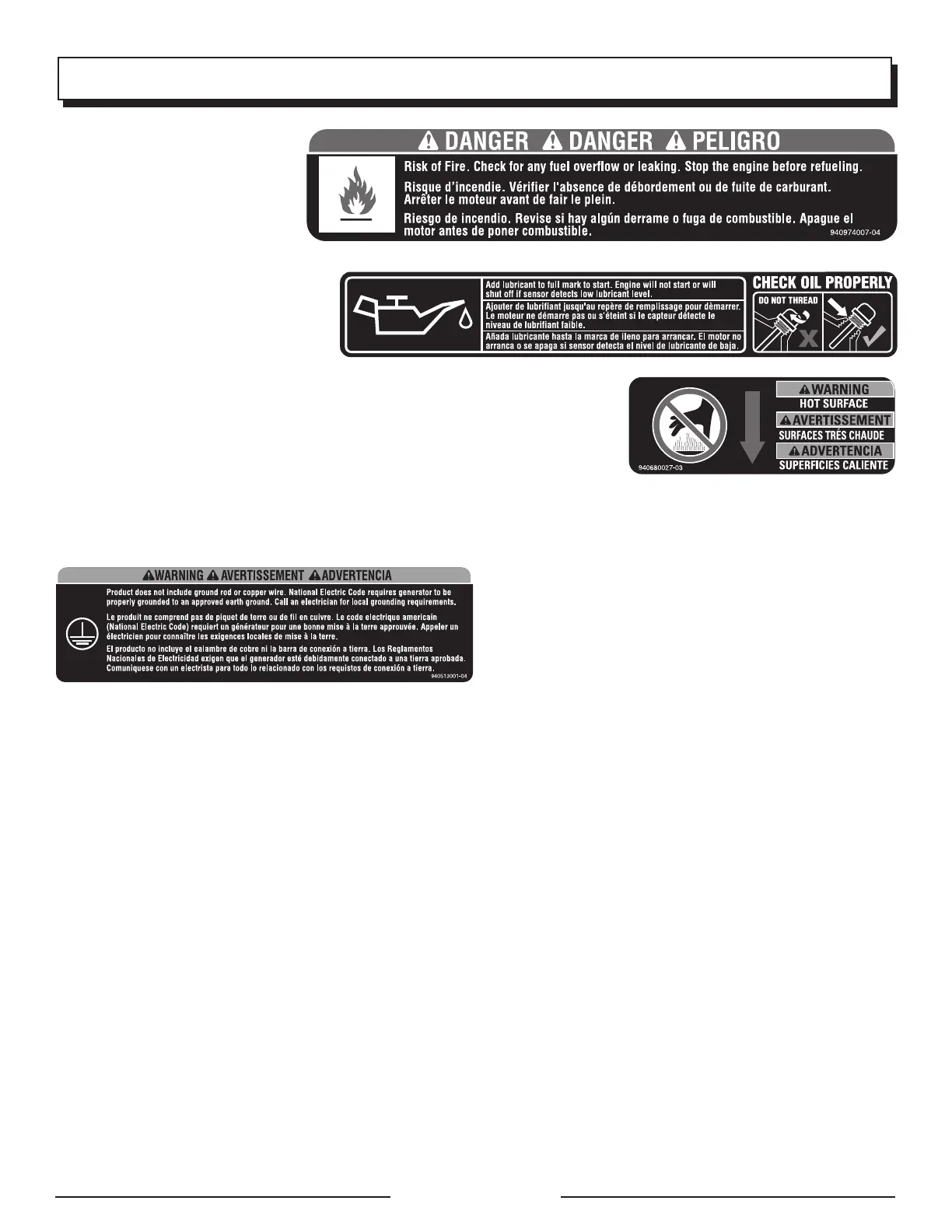 Ajouter de le lubrifiant avant l’utilisation initiale du générateur. Toujours véri-