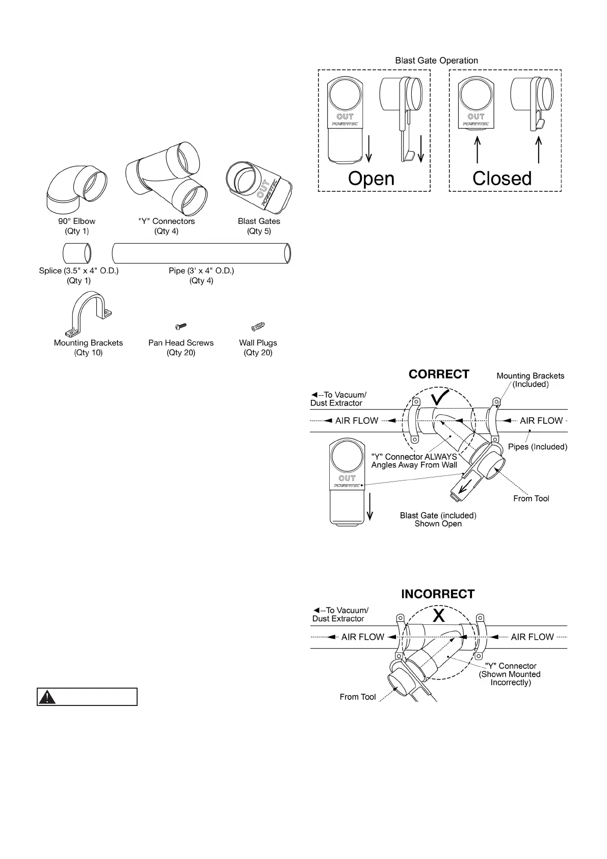 • Always assemble the blast gates at the end of the "Y"