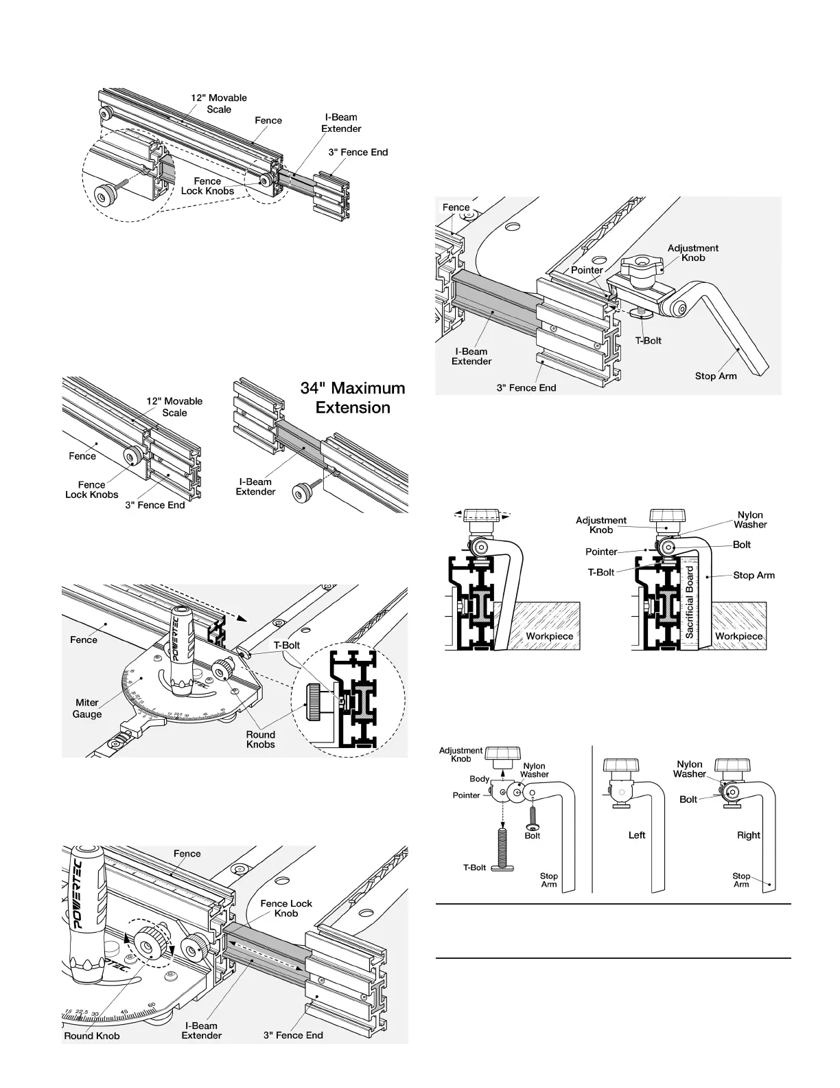 of the Fence and insert I-Beam into the Fence. Tighten Knobs.