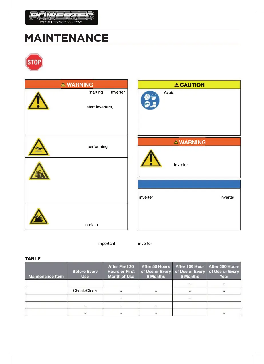 BEFORE PERFORMING MAINTENANCE ON THE INVERTER, REVIEW THE
