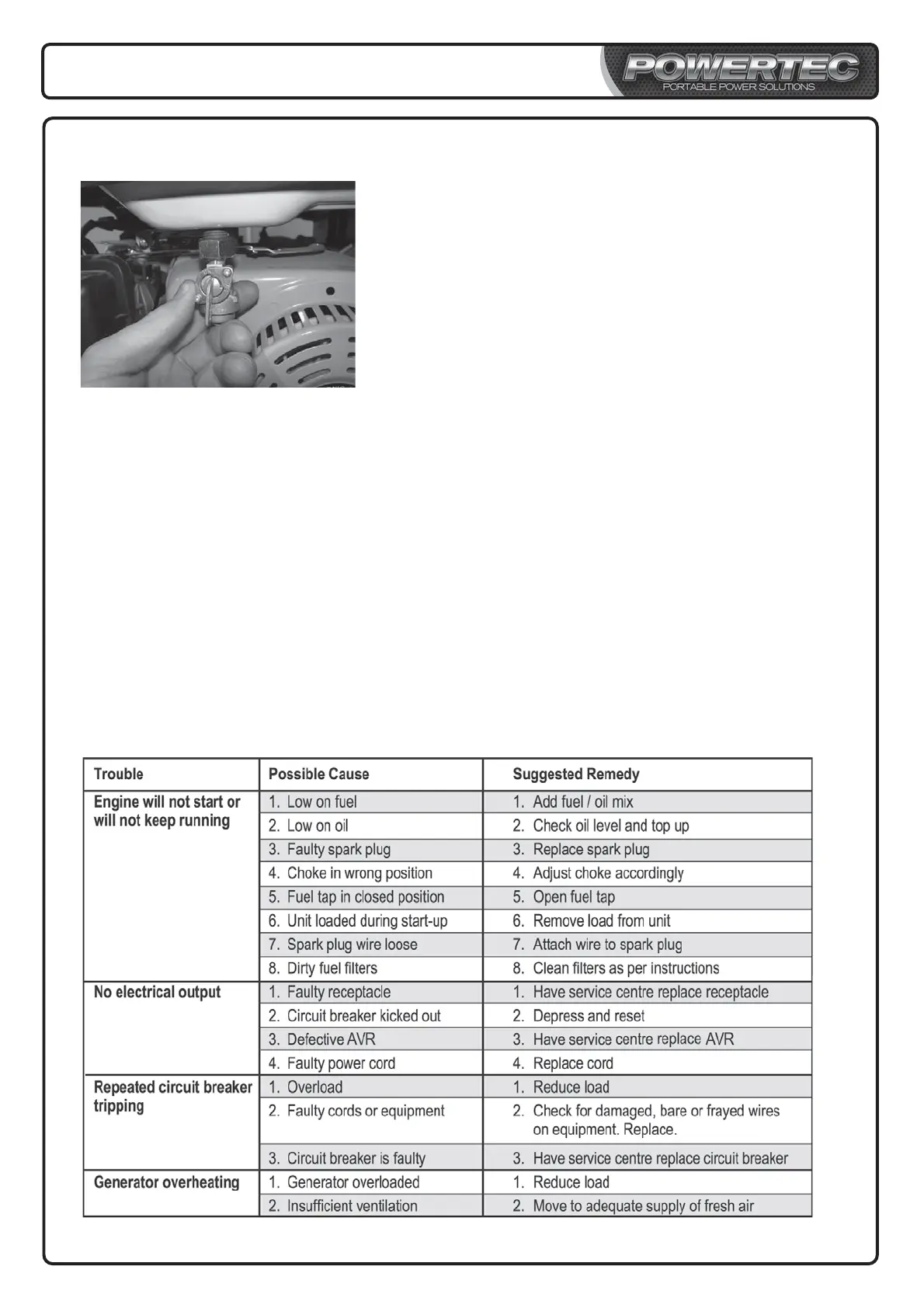 generator. See contact details for service under the