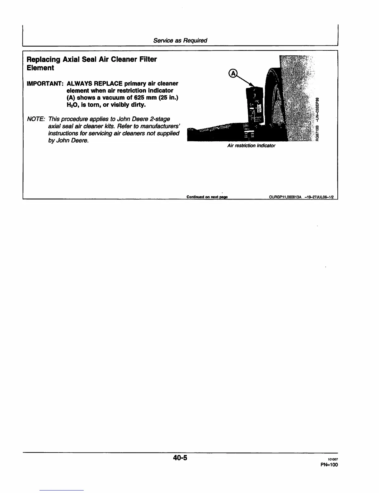 PowerTech 4045TF280 - Replacing Axial Seal Air Cleaner Filter Element