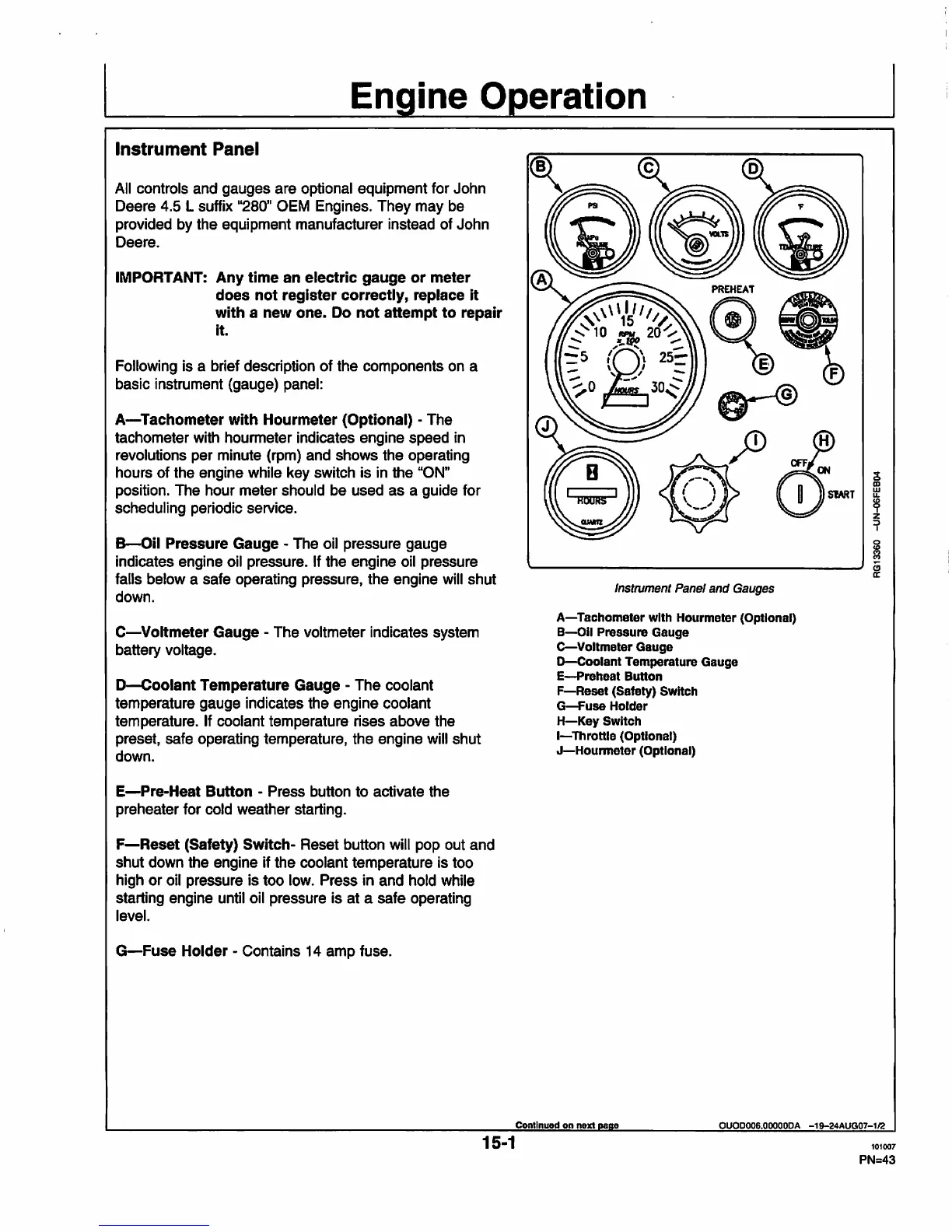 PowerTech 4045TF280 - Engine Operation; Instrument Panel