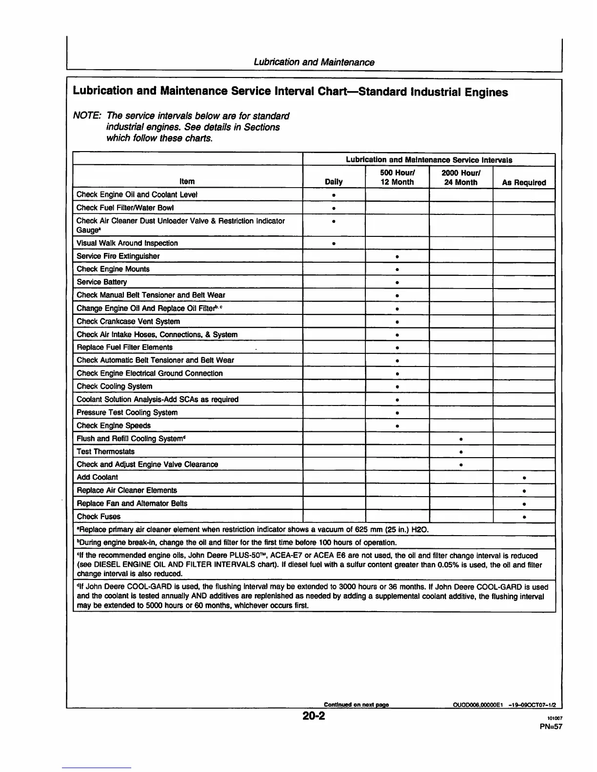 PowerTech 4045TF280 - Lubrication and Maintenance Service Interval Chart