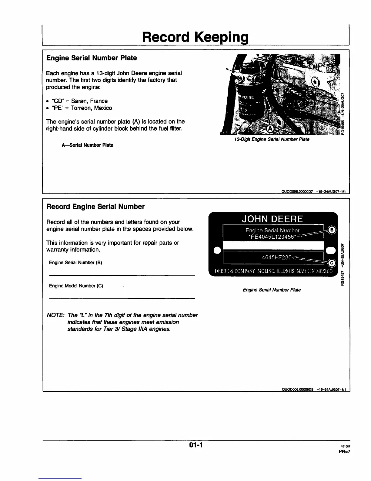 PowerTech 4045TF280 - Record Keeping; Engine Serial Number Plate; Record Engine Serial Number