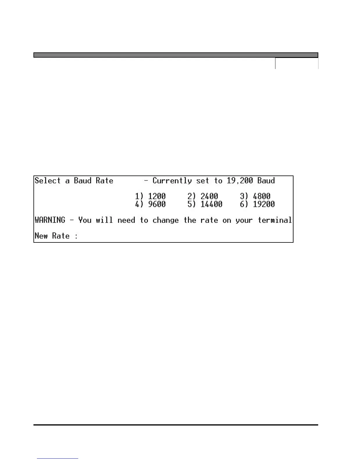 This Command allows the operator to change the communications Baud rate setting inside the