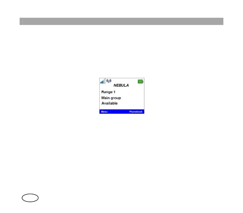 The main screen is the ‘Voice call – Group mode’ screen. The terminal is ready for you to