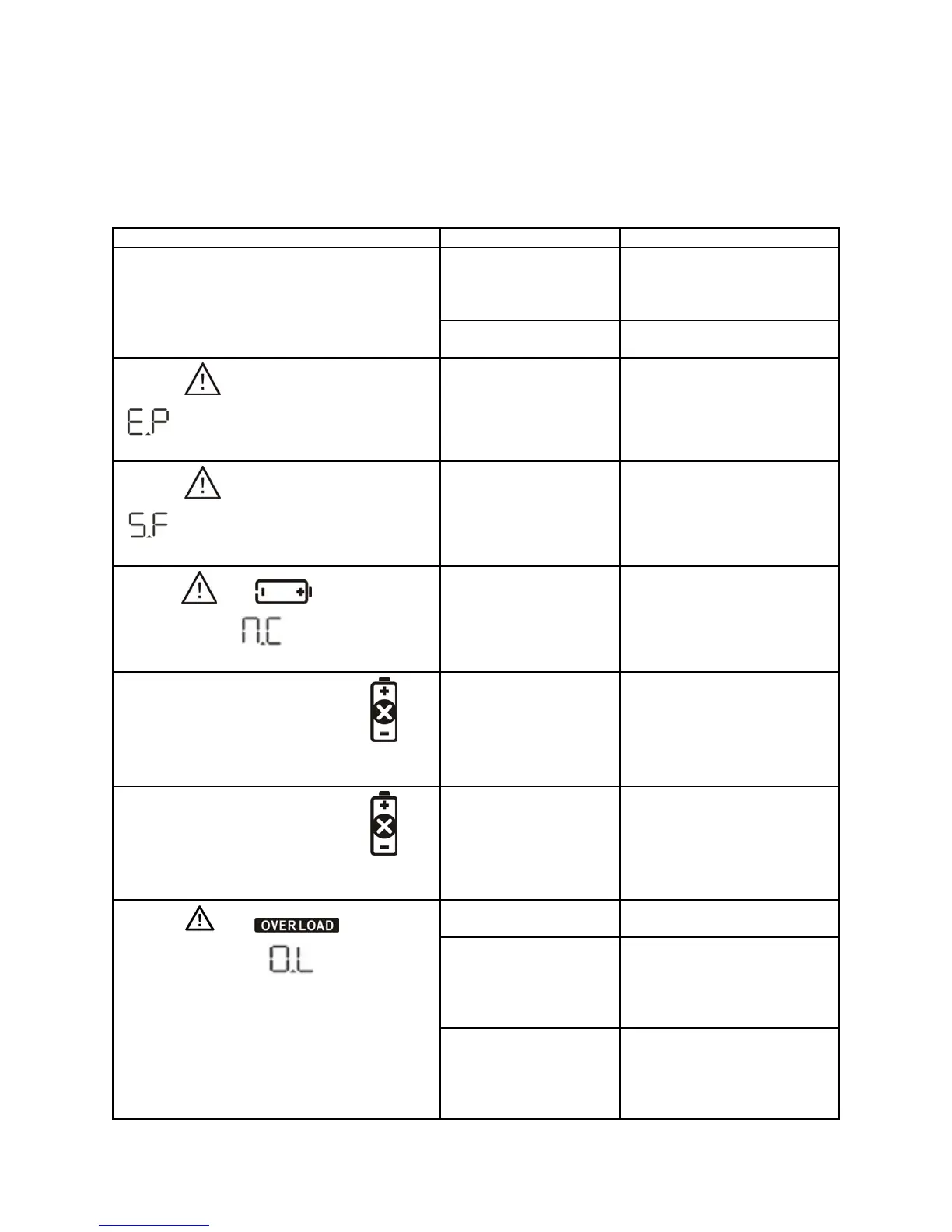 If the UPS system does not function properly, please resolve the problem by referring to the table below and on the