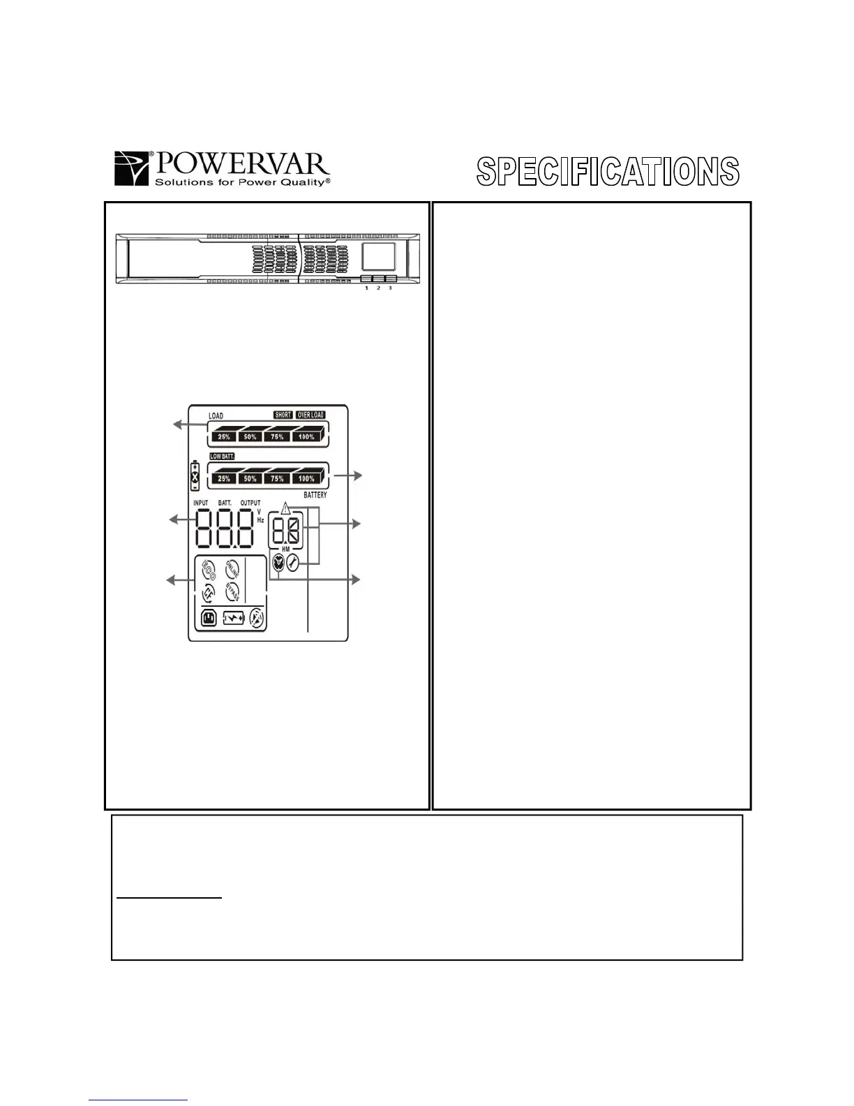 POWERVAR depot service. See the Limitations of Warranty section below for additional limitations & exclusions.