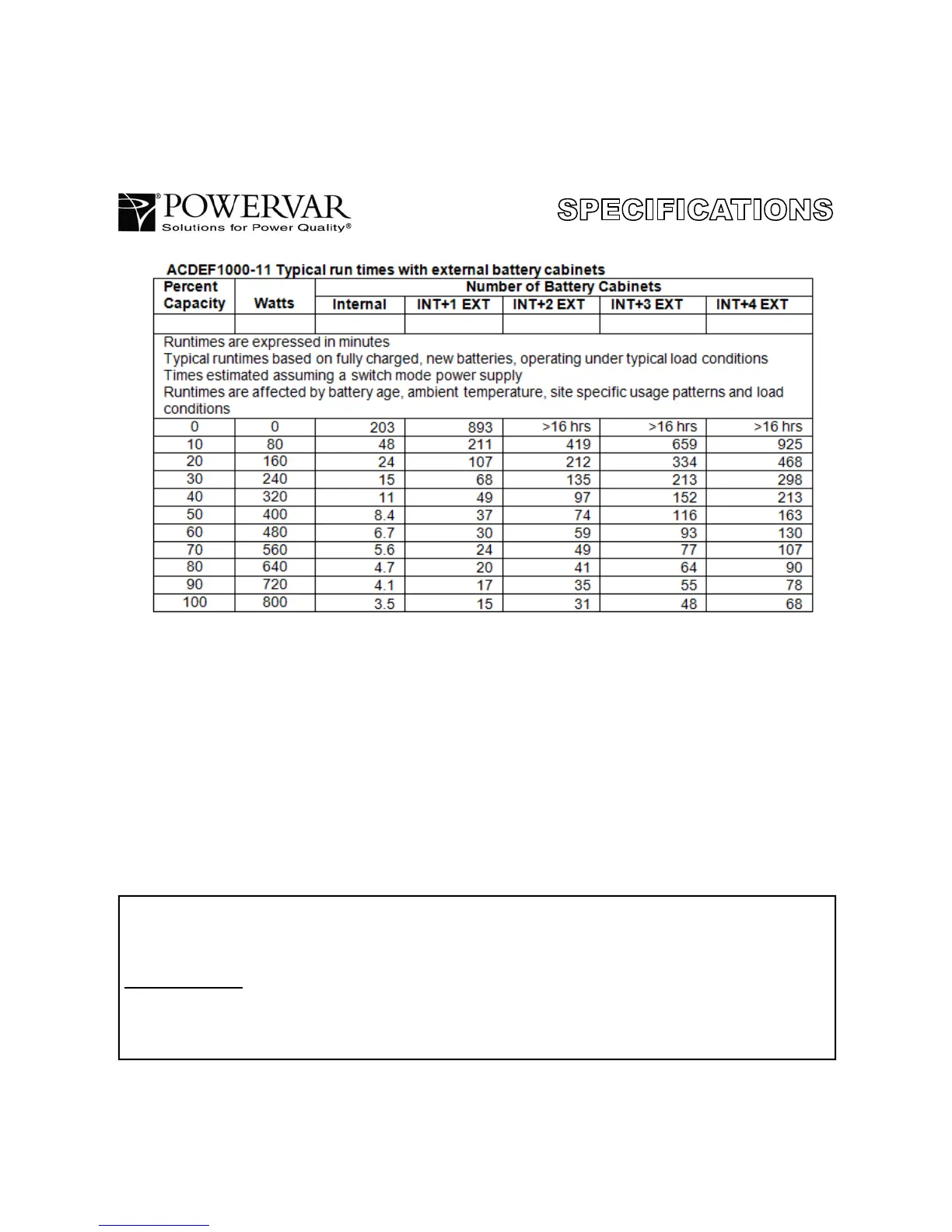 in such applications will experience substantially reduced battery life. For that reason, POWERVAR’s standard battery warranty does not apply for