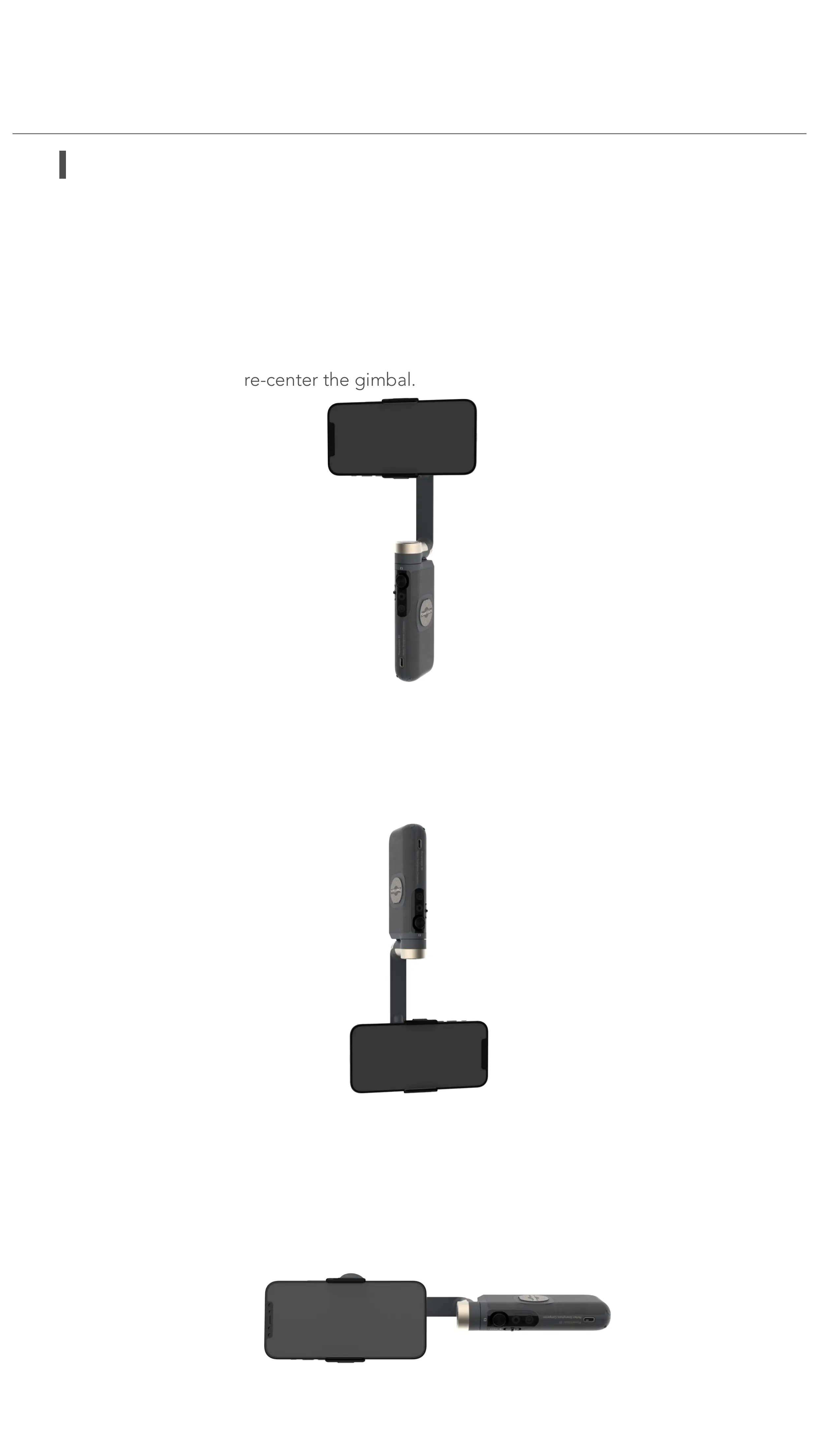 and the device should be at a horizontally level with the gimbal. Then it is in side grip