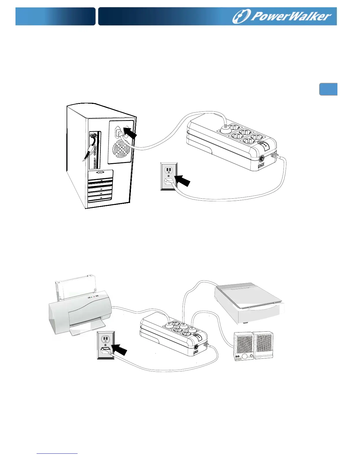 versorgten Buchsen oben an der USV an. Die PowerWalker VFD 600/800 APFC