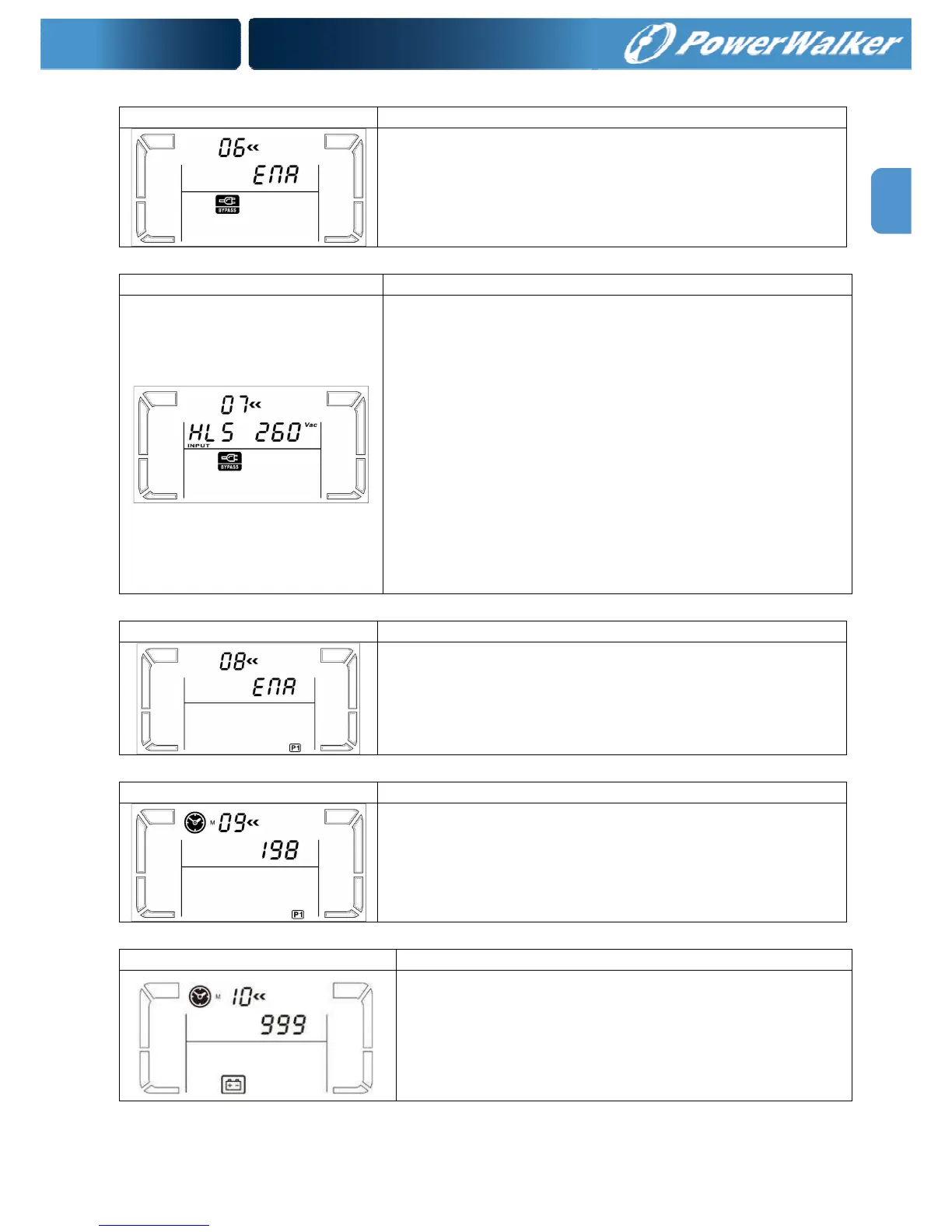 0-999: ajusta el tiempo de autonomía (durante el modo batería)