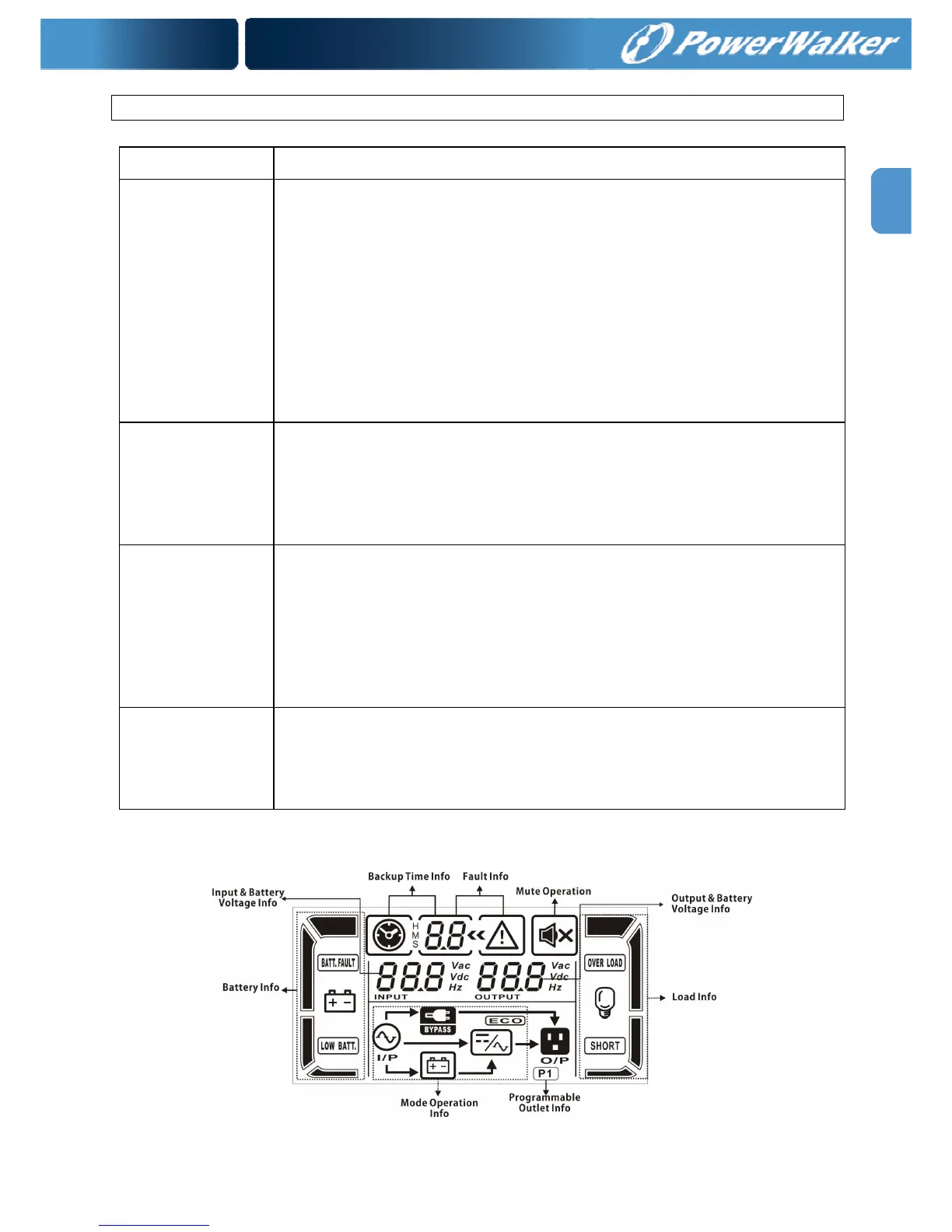 d’ingresso, tensione batteria, tensione e frequenza d’uscita. Il display