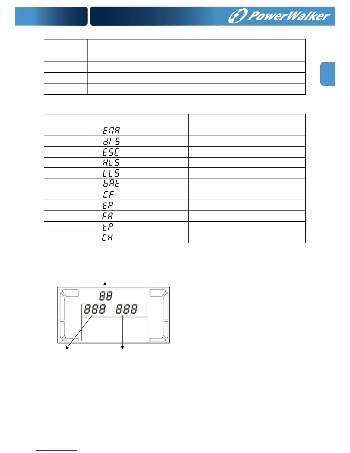 Abbreviazioni Indicazione sul Display Significato