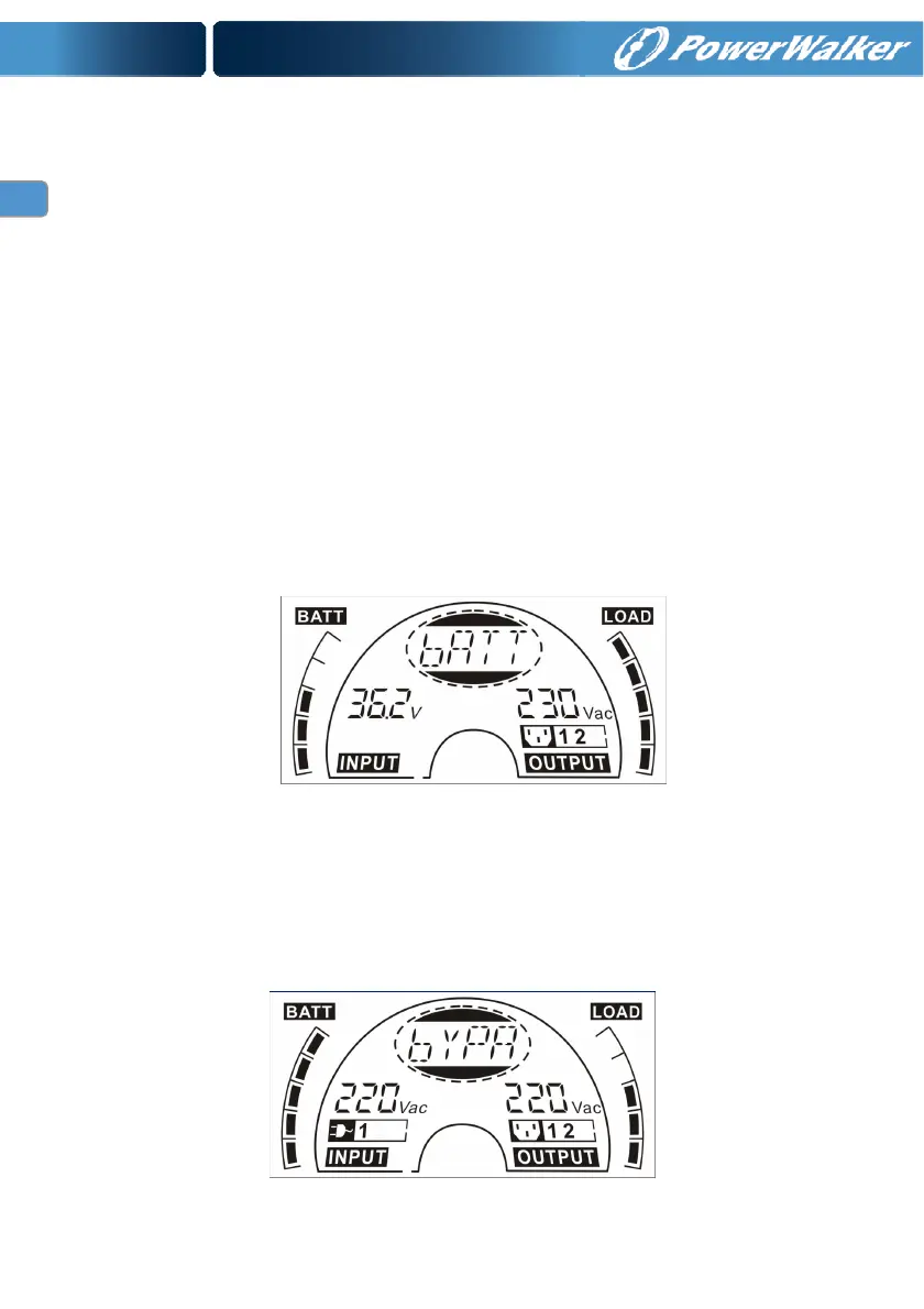 bypass mode. The “bYPA” string indicate the UPS is working in the bypass