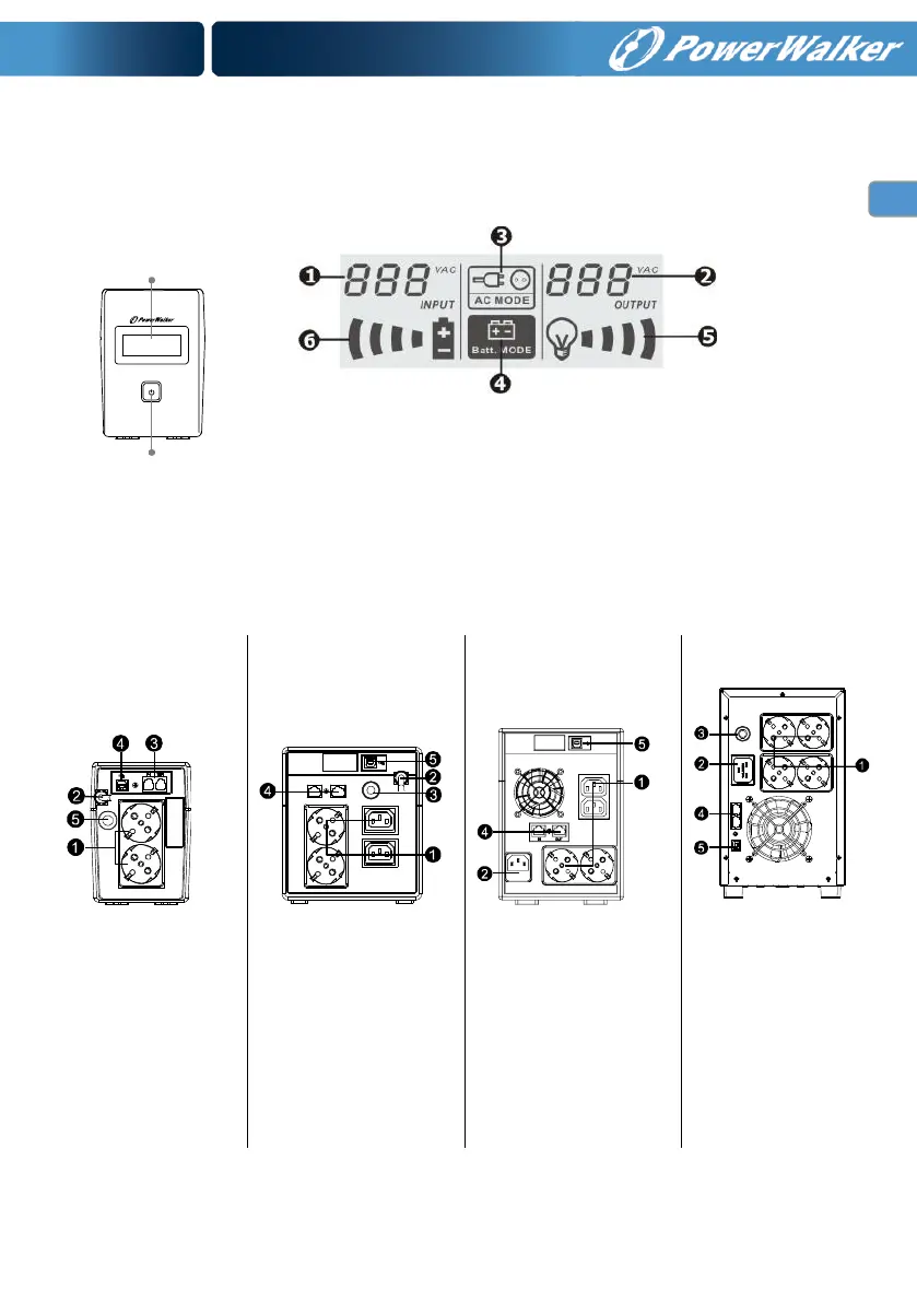PowerWalker VI 2000 LCD - Product Overview; Front Panel; Back Panel; LCD Panel
