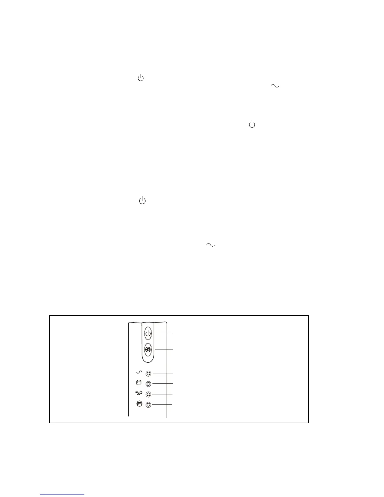 The UPS front panel indicates the UPS status and also identifies potential power