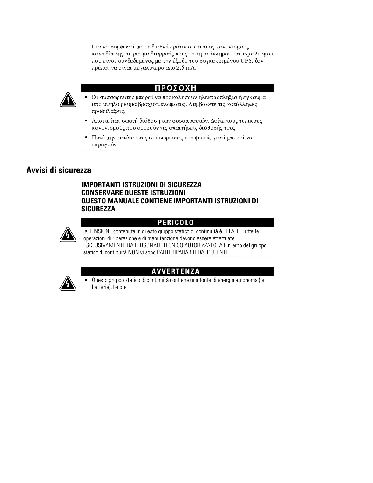 sicurezza del gruppo statico di continuità e dell’apparecchiatura ad esso collegata.
