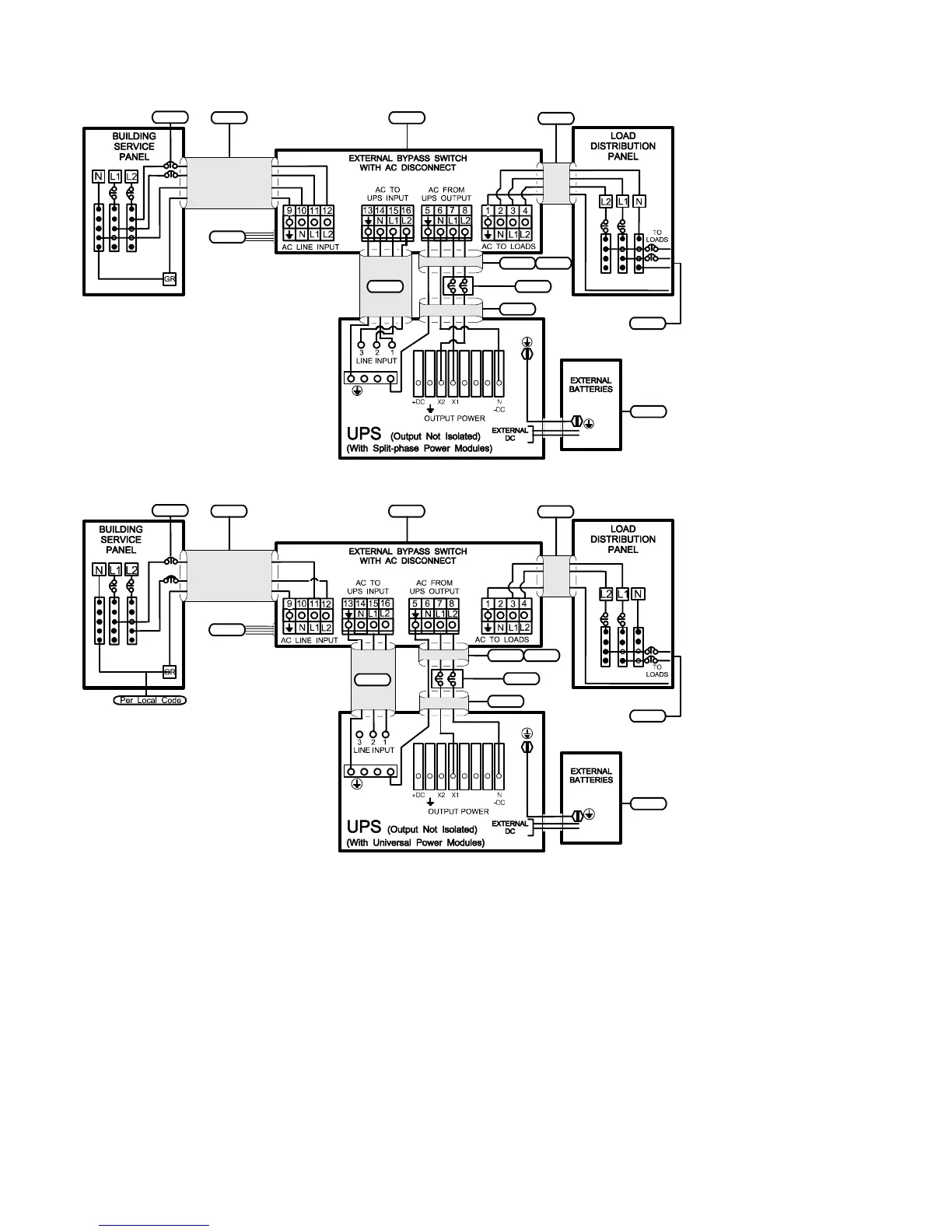 Figure 22. External Bypass Switch (L1, L2, N), Non-Isolated Output, Split-Phase Power Modules