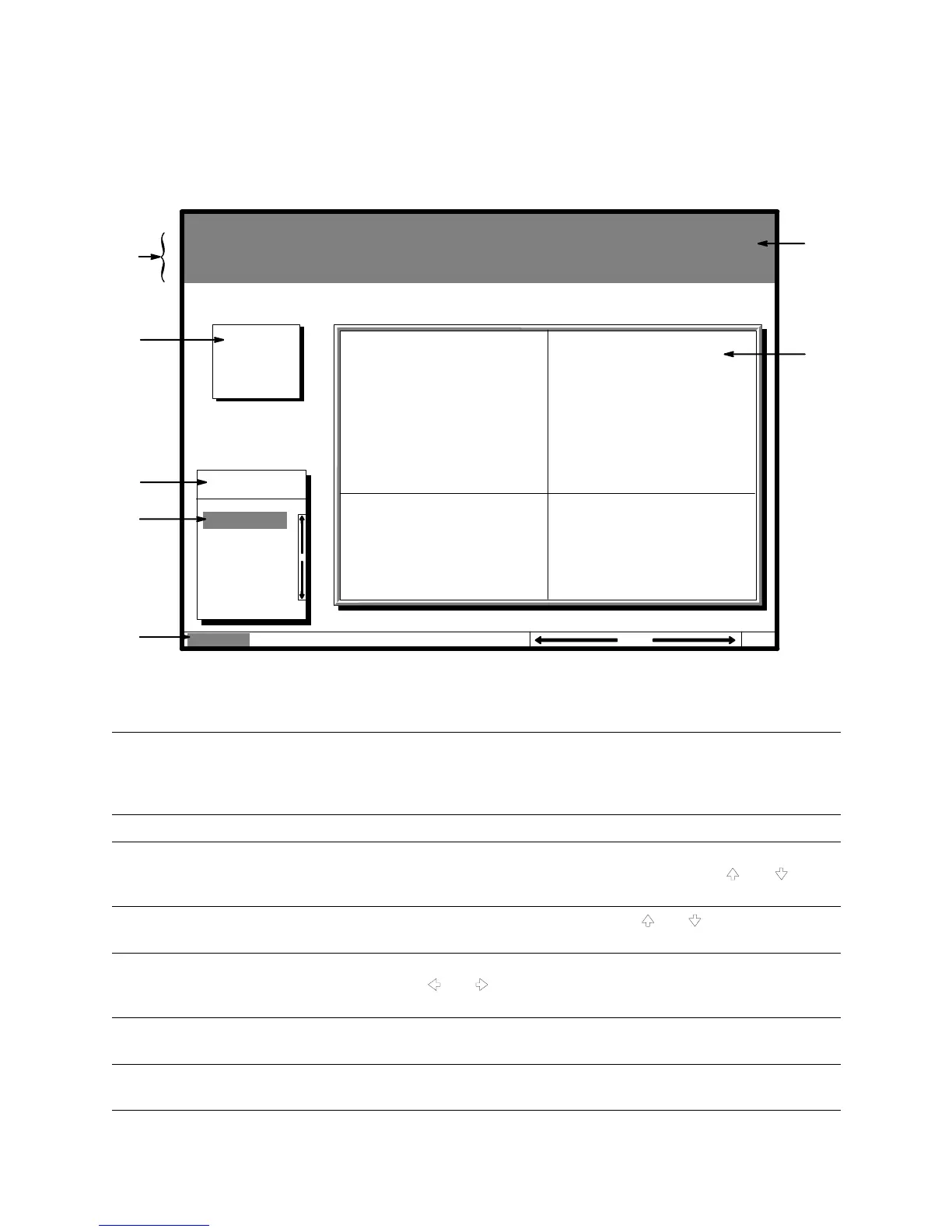 C The menu box shows the currently selected menu and lists the options available on that menu. The
