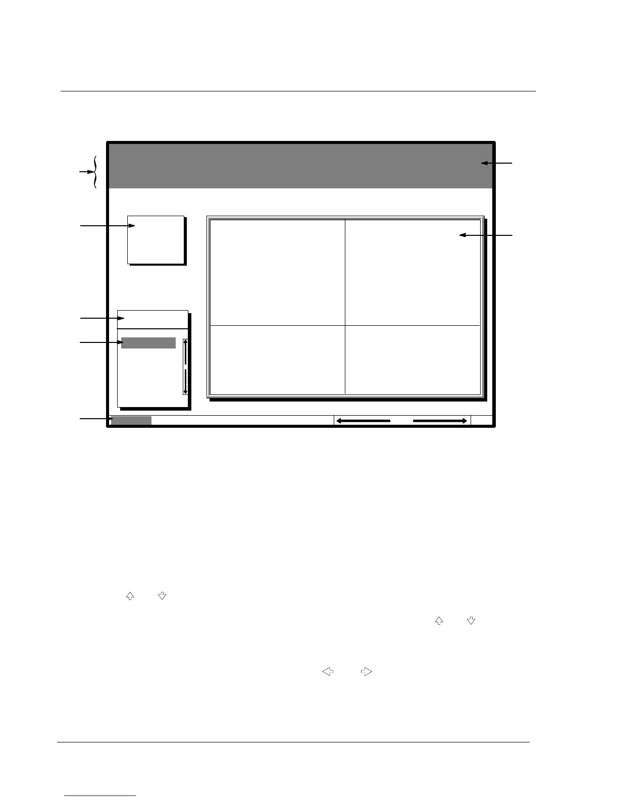 and pushbuttons to scroll up and down through the options in the menu box.