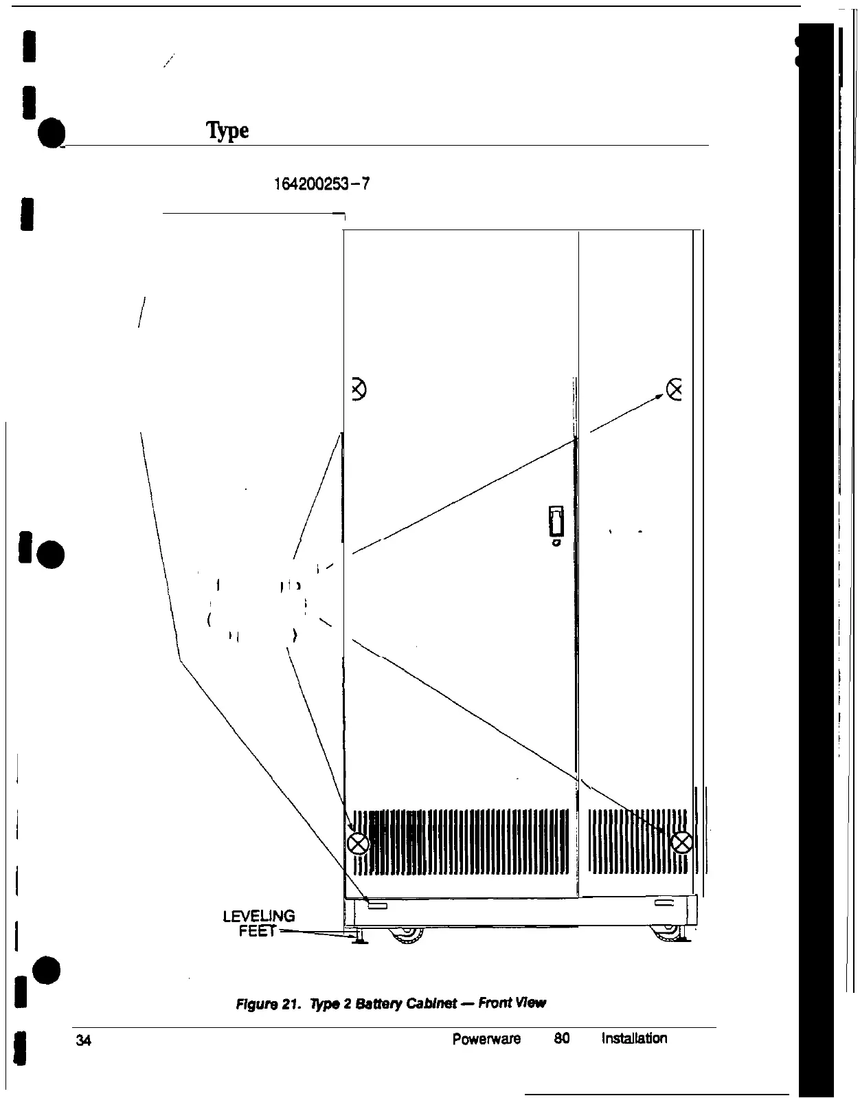 Figure 21 on page 34 shows the Type 2 battery cabinet as it arrives, with the doors
