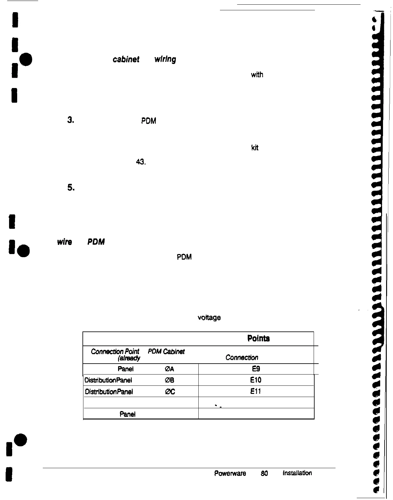 are already made. Locate the coil of cables inside the PDM cabinet.
