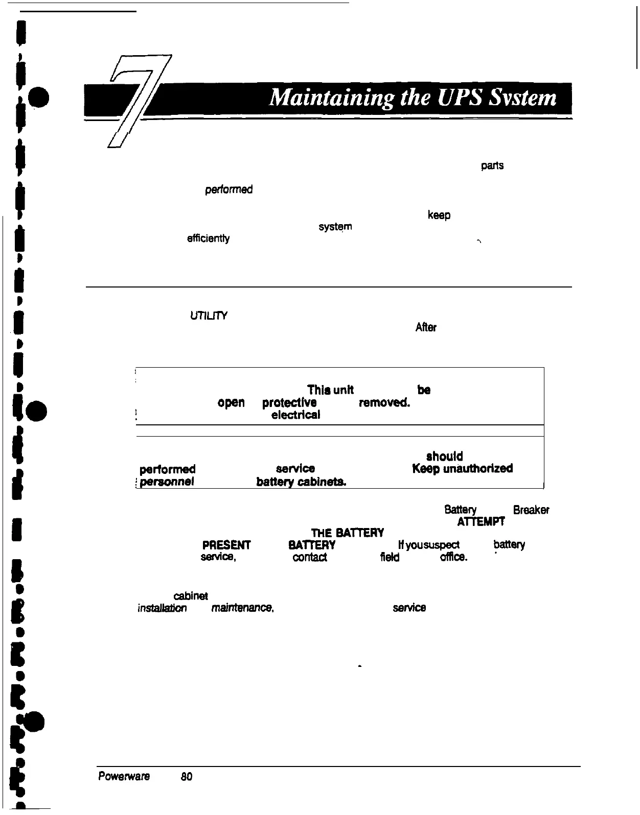 Regular routine checks of operation and system parameters will enable your UPS system,