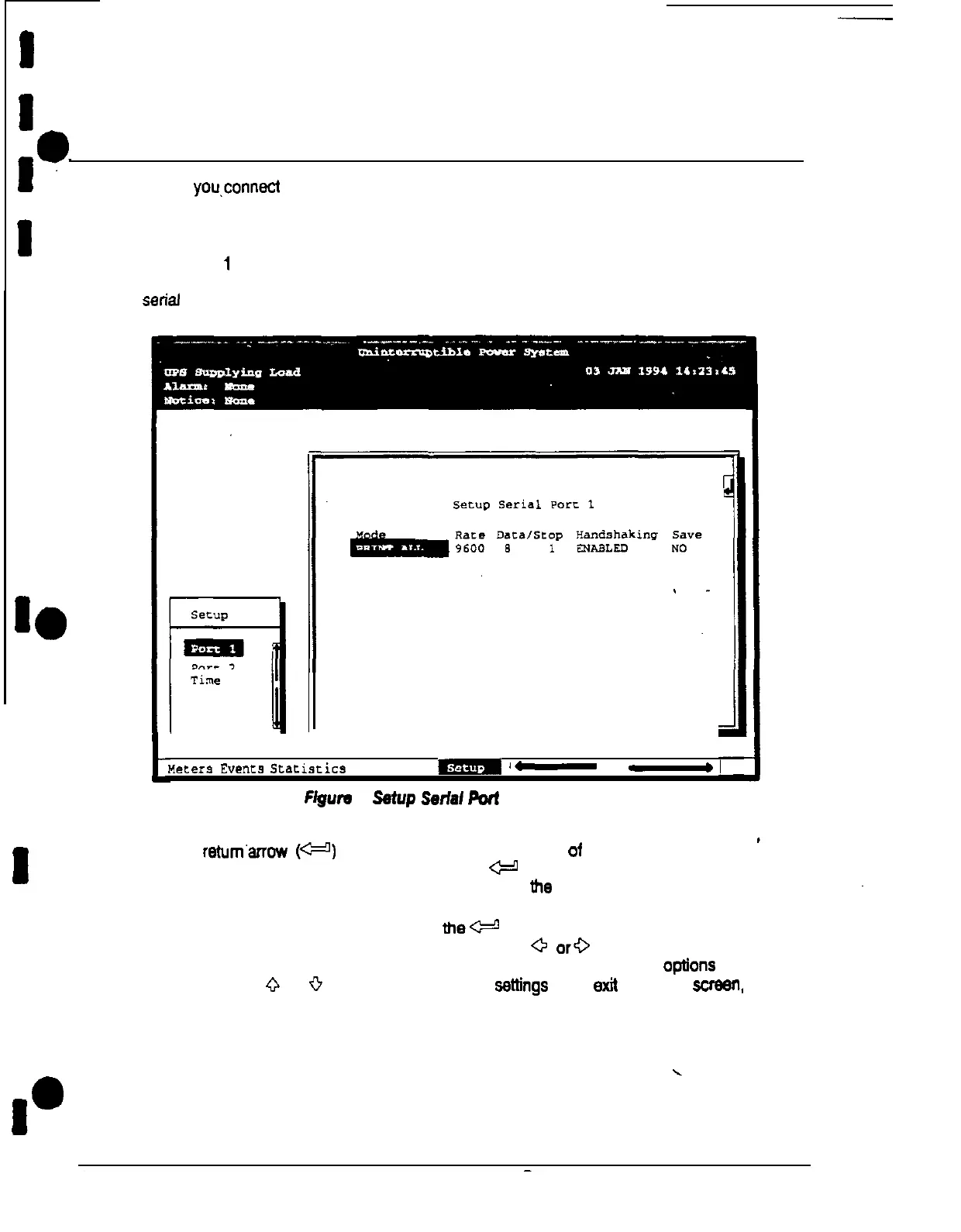 serial communication ports. Figure 4 shows the Setup Serial Port 1 screen.