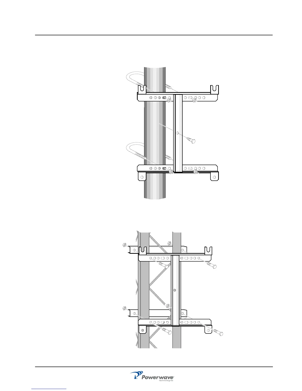 Figure 3-4 illustrates a mast installation using two 11.8ā (300mm) bar-shaped clamps and no