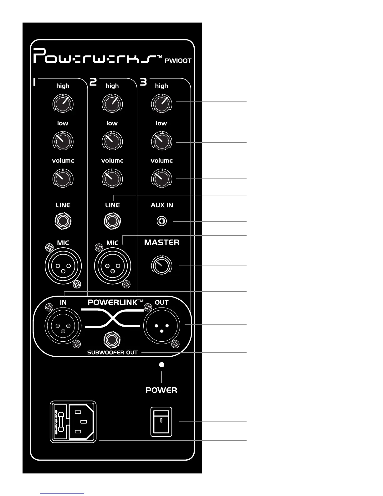Powerwerks PW100T - CONTROLS & FEATURES OVERVIEW; Mic Inputs; LINE Inputs; AUX IN