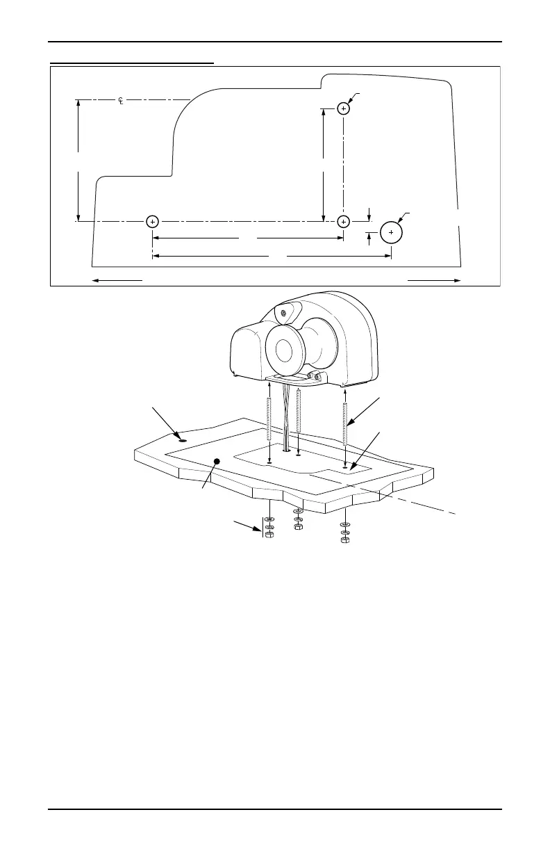 6. Under the deck, secure the winch to the deck use one (1) each 5/16 flat