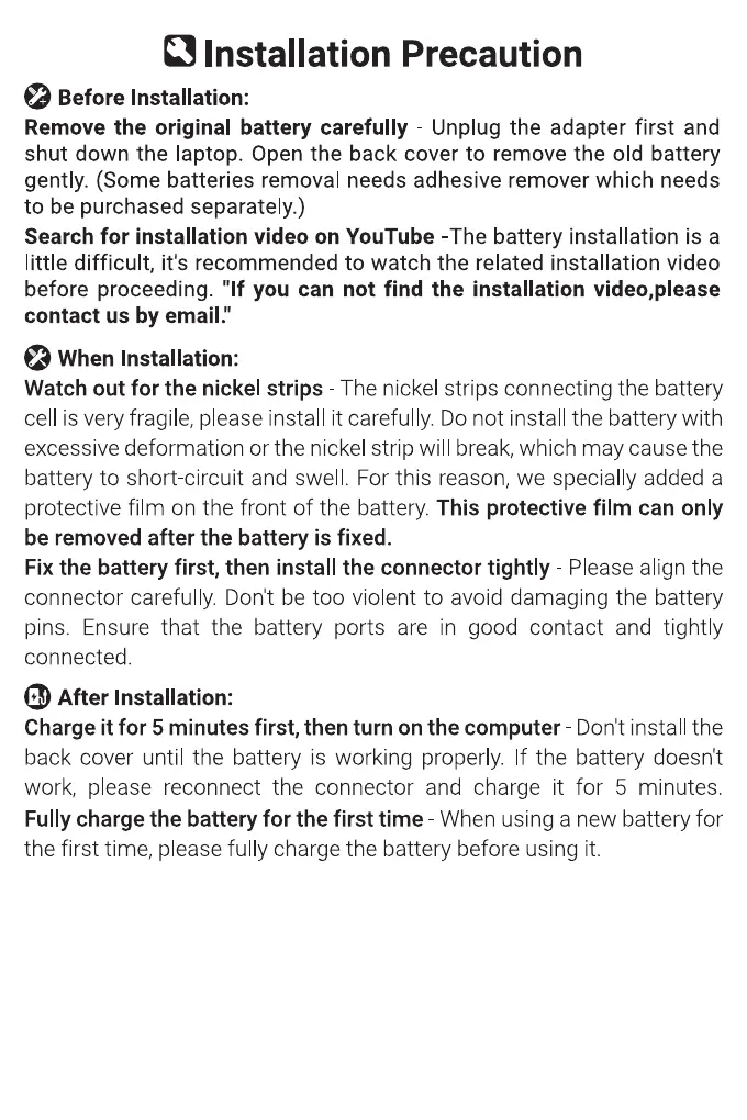 cel is very fragile, please instal it carefully. Do not install the battery with