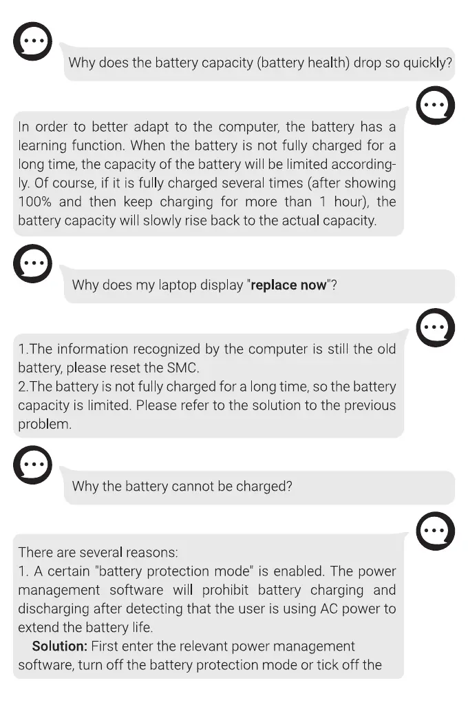 software, turn off the battery protection mode or tick off the