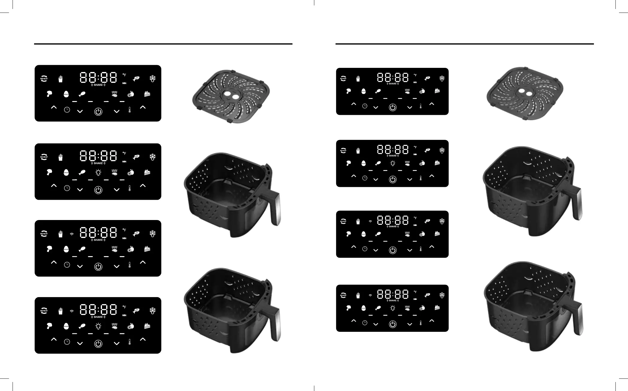 PowerXL VORTEX PRO AF-E2001 - Appliance Parts Identification; 6-Qt. Display Panels and Baskets; 8-Qt. Display Panels and Baskets