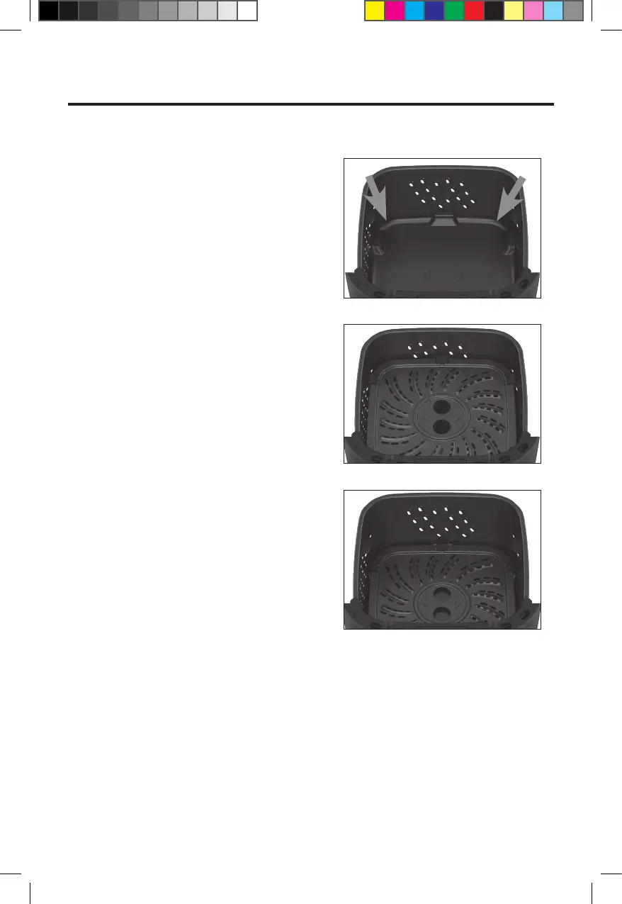 NOTA: Este aparato cocina con aire caliente. No llene la cesta con aceite ni grasa para freír.