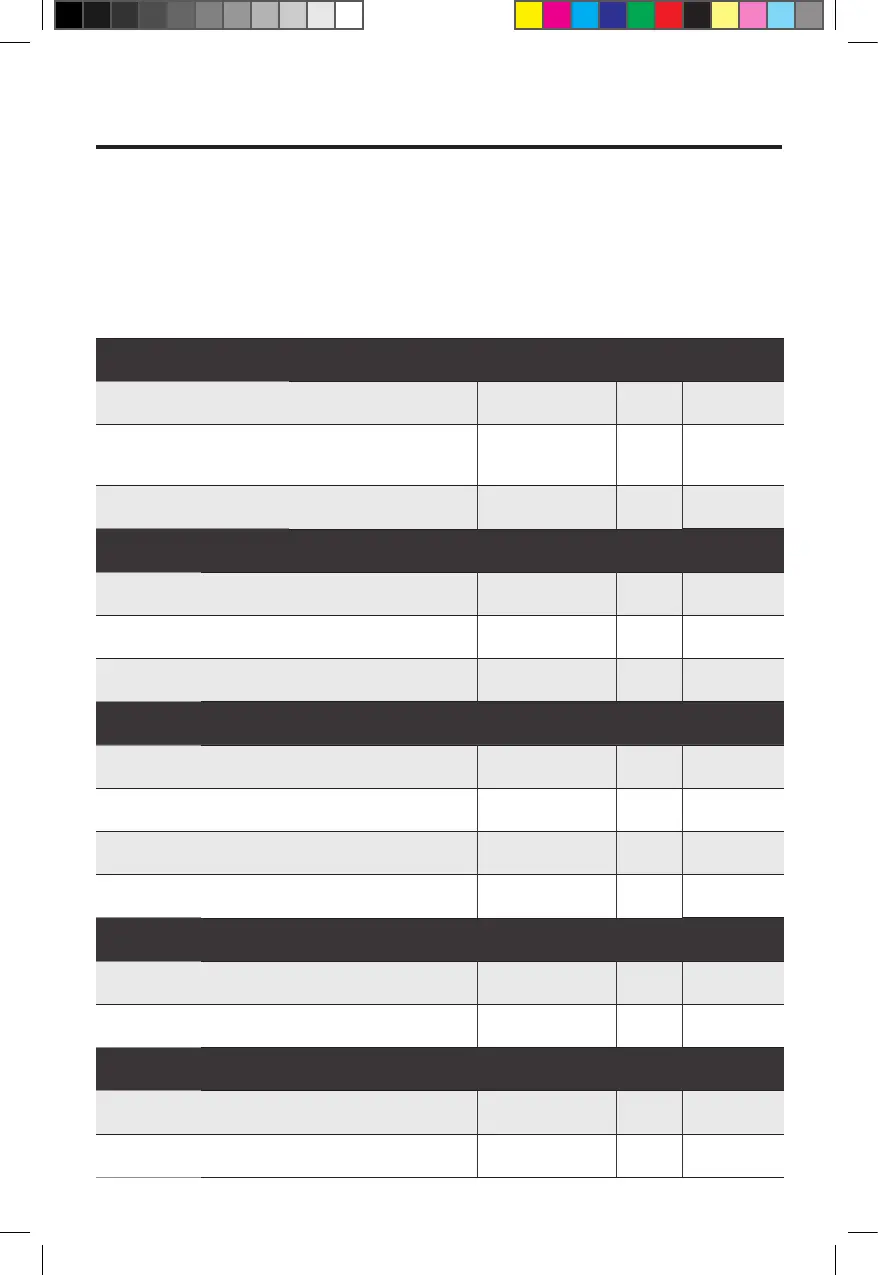 NOTA: Tenga en cuenta que la información en esta tabla se debe utilizar como una guía.