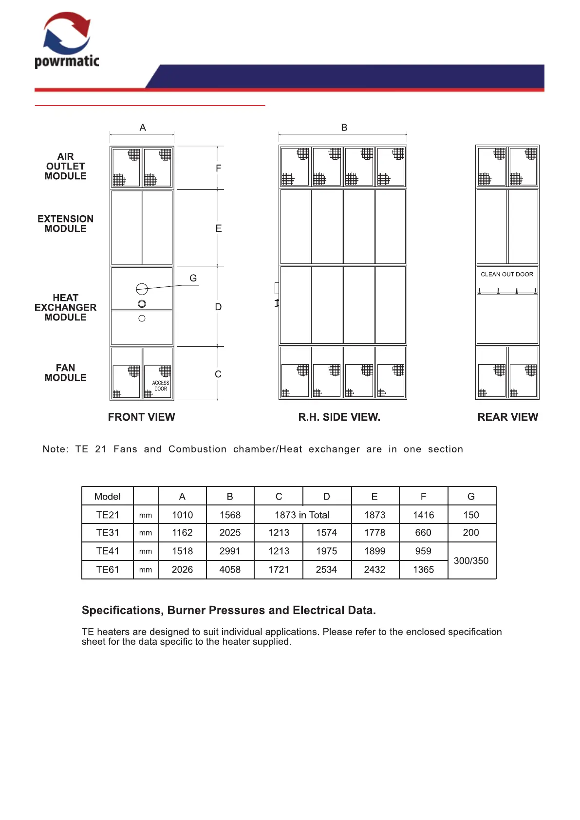 work or replacement of failed components. Access doors on TE