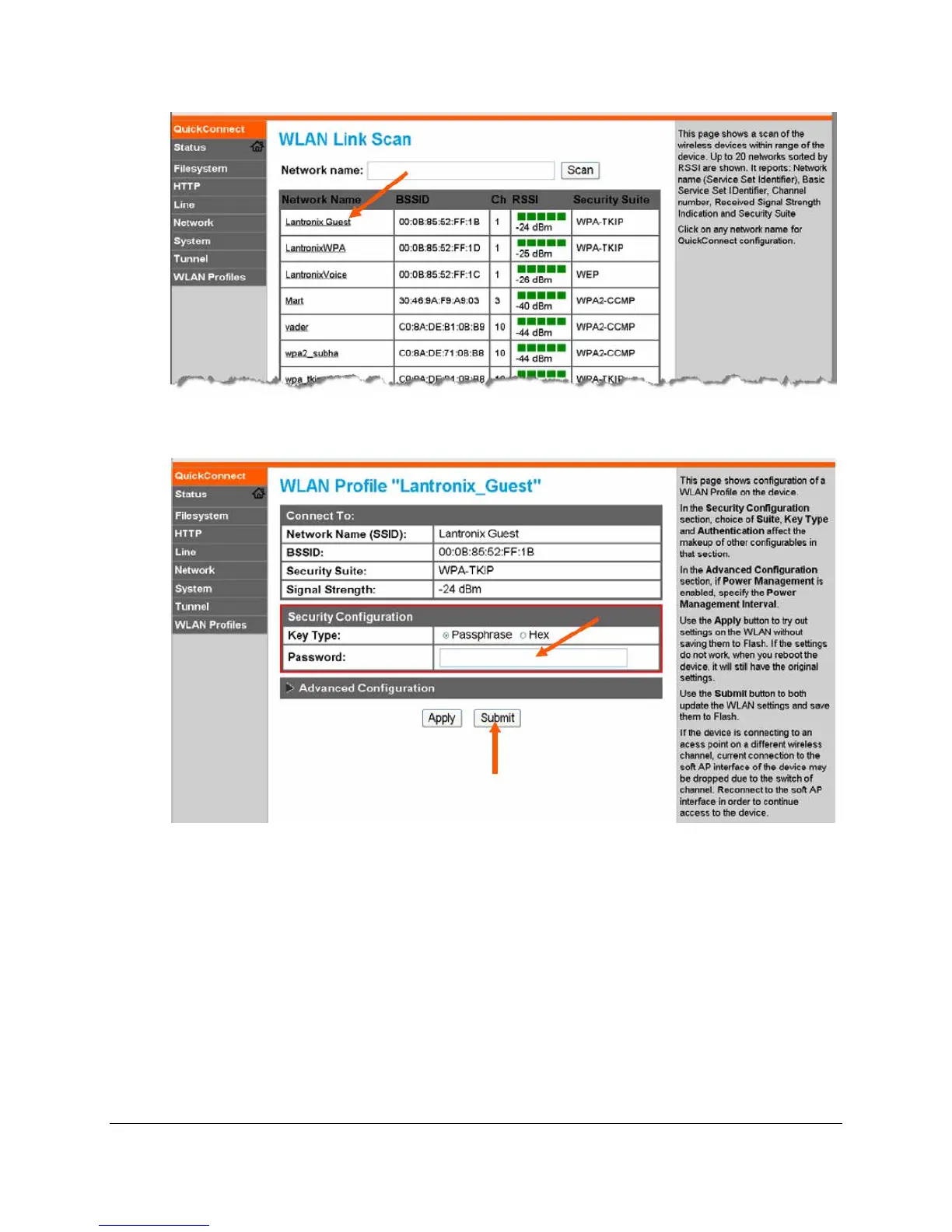 4. When the selected Access Point profile displays, enter the password and click Submit to directly