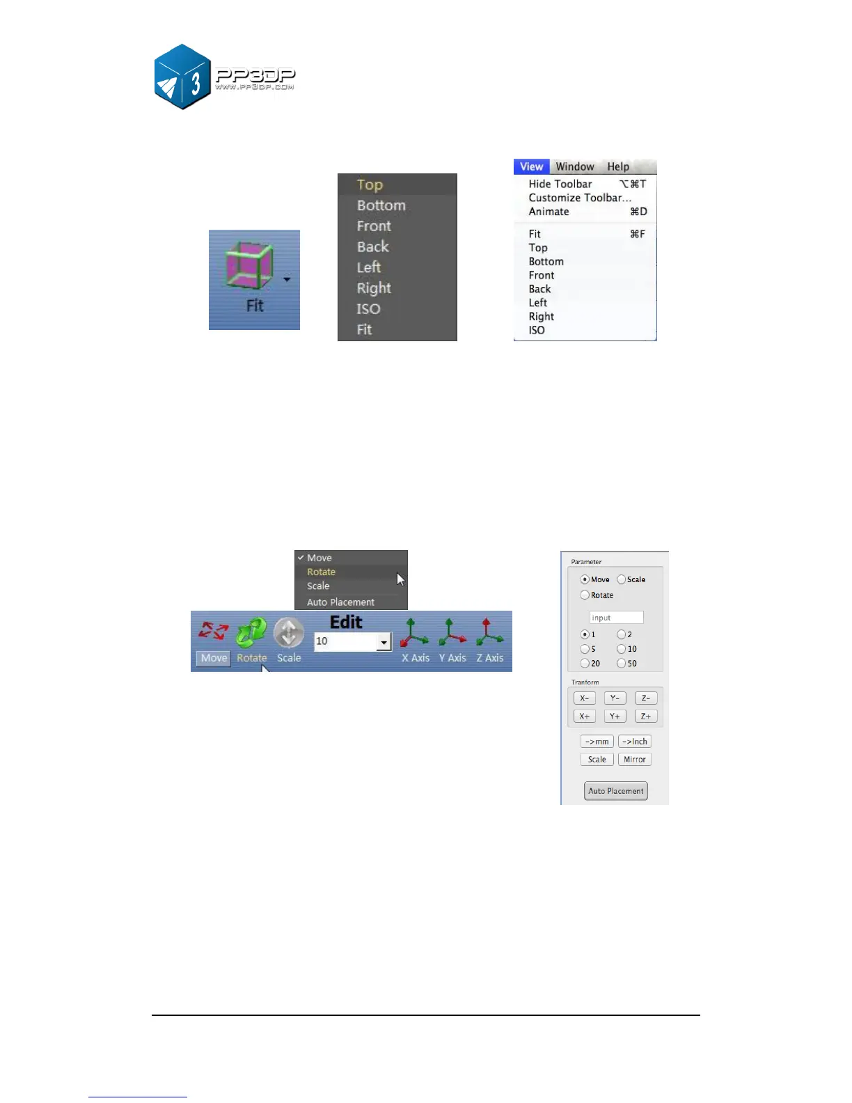 Moving a model: Click the “Move” button and, in the text box, choose, or input,