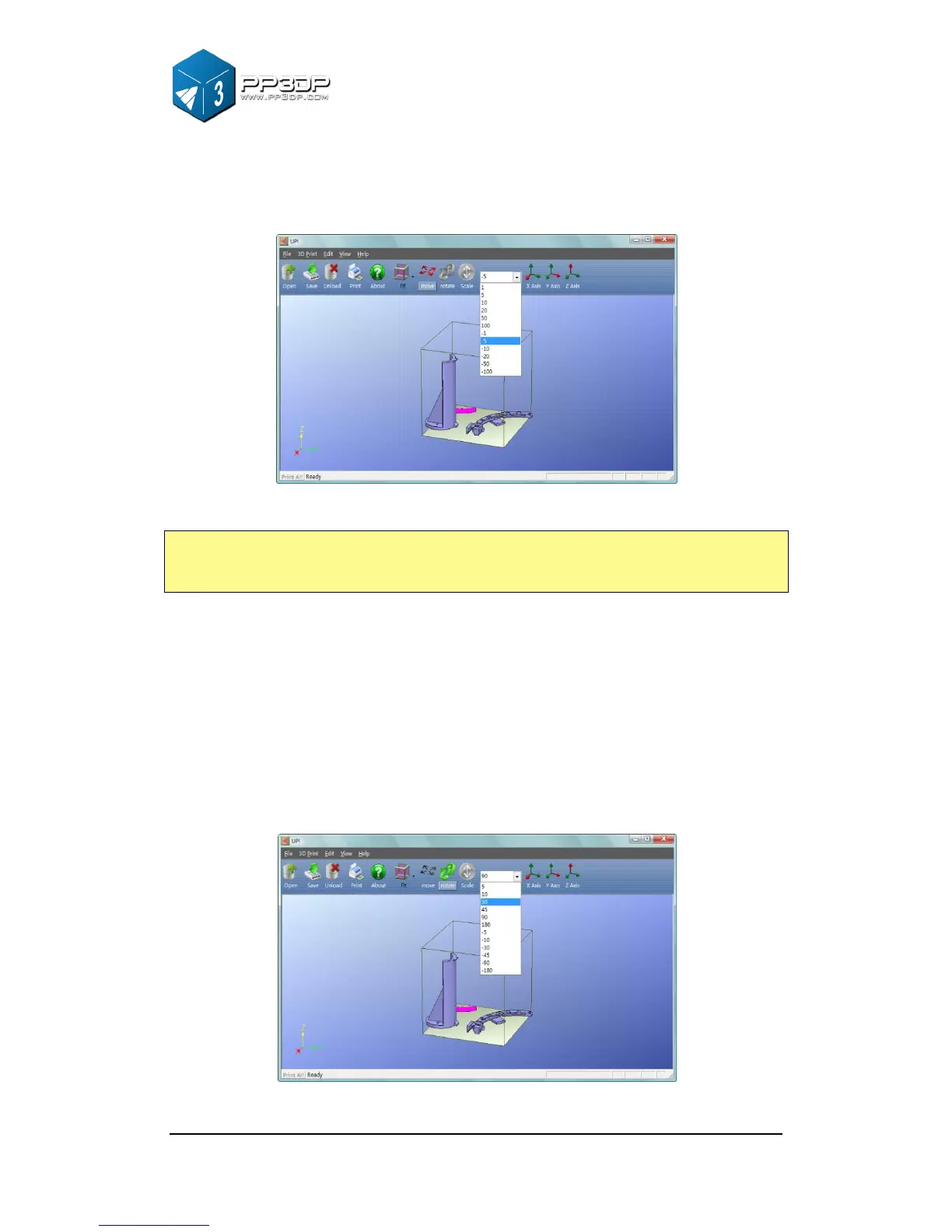 Rotating a model: Click the “Rotate” button on the toolbar, in the text box,