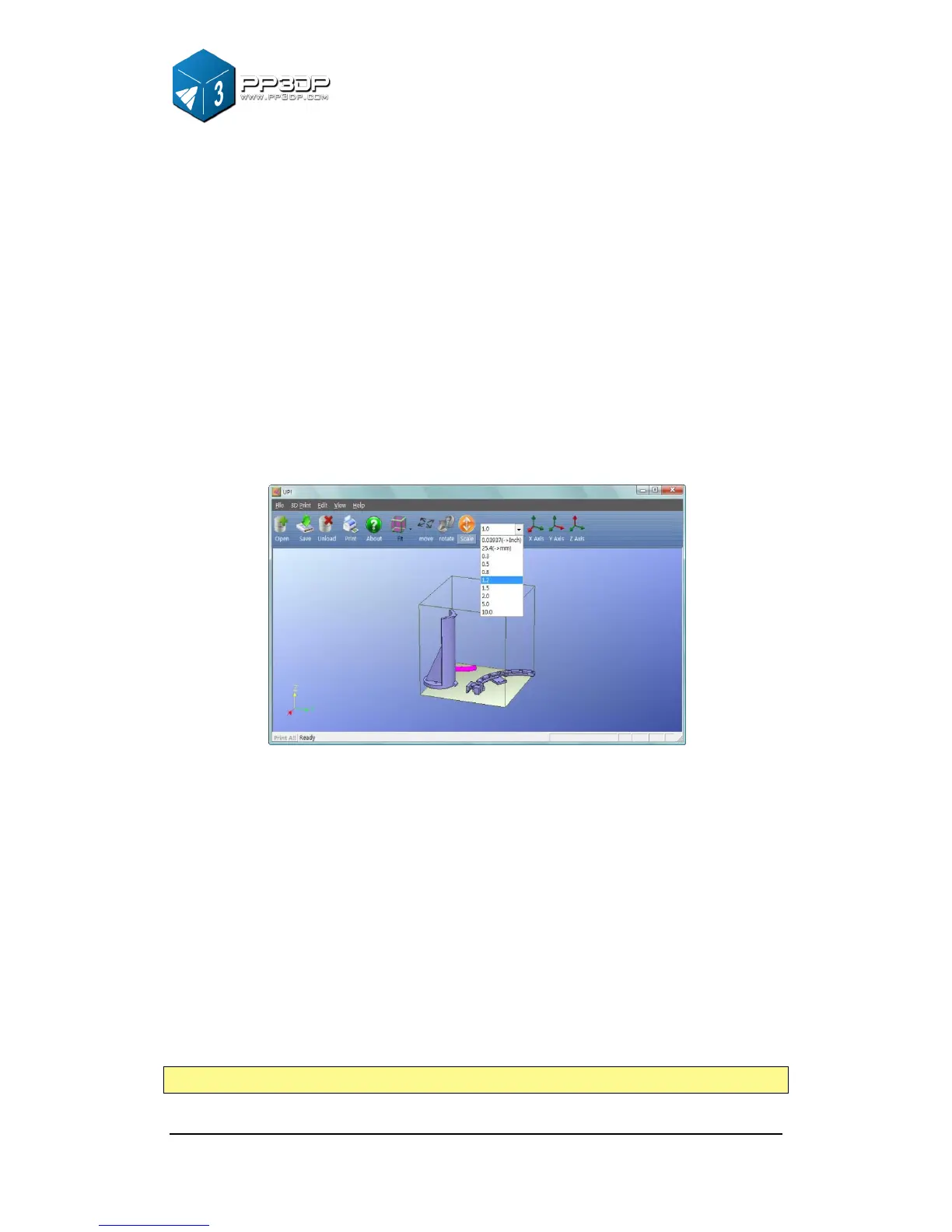 Scaling a model: Click “Scale”, choose or input a scaling ratio in the text box,