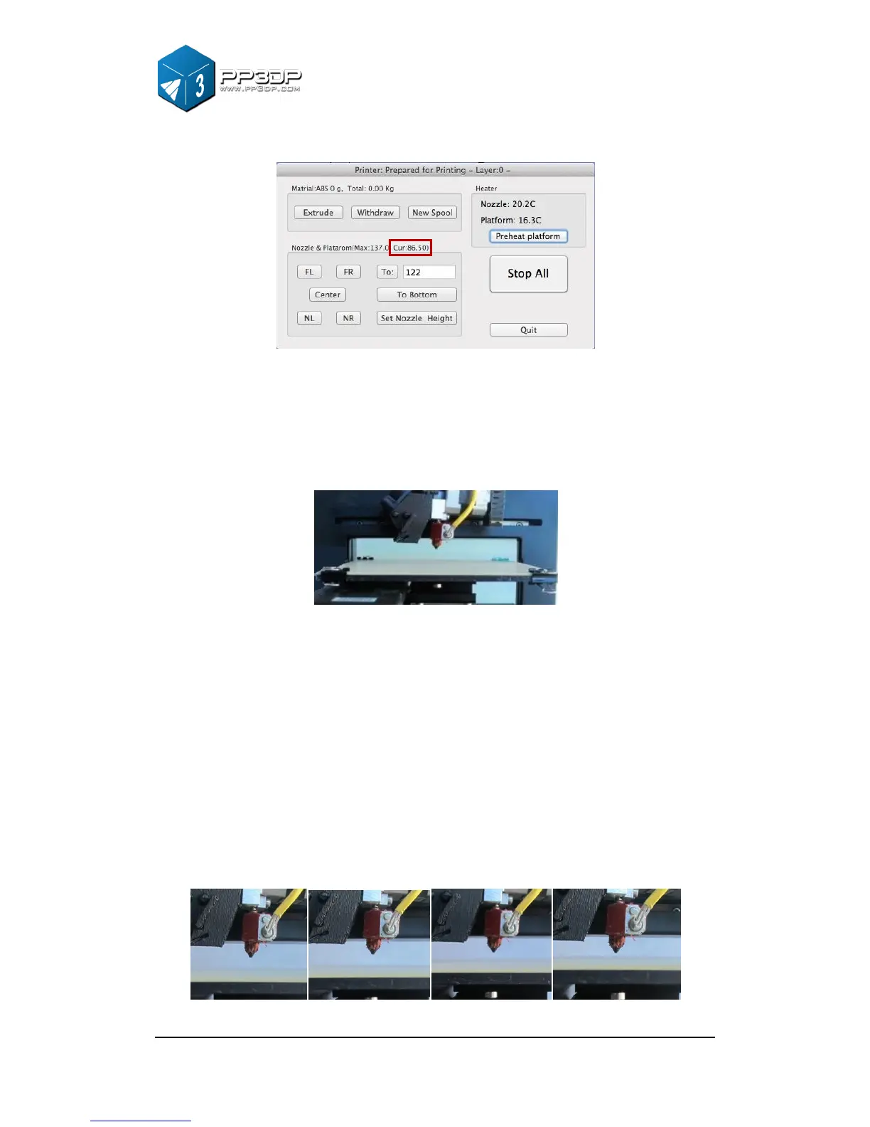 3 - Check the distance between the nozzle and the platform. If, for example,