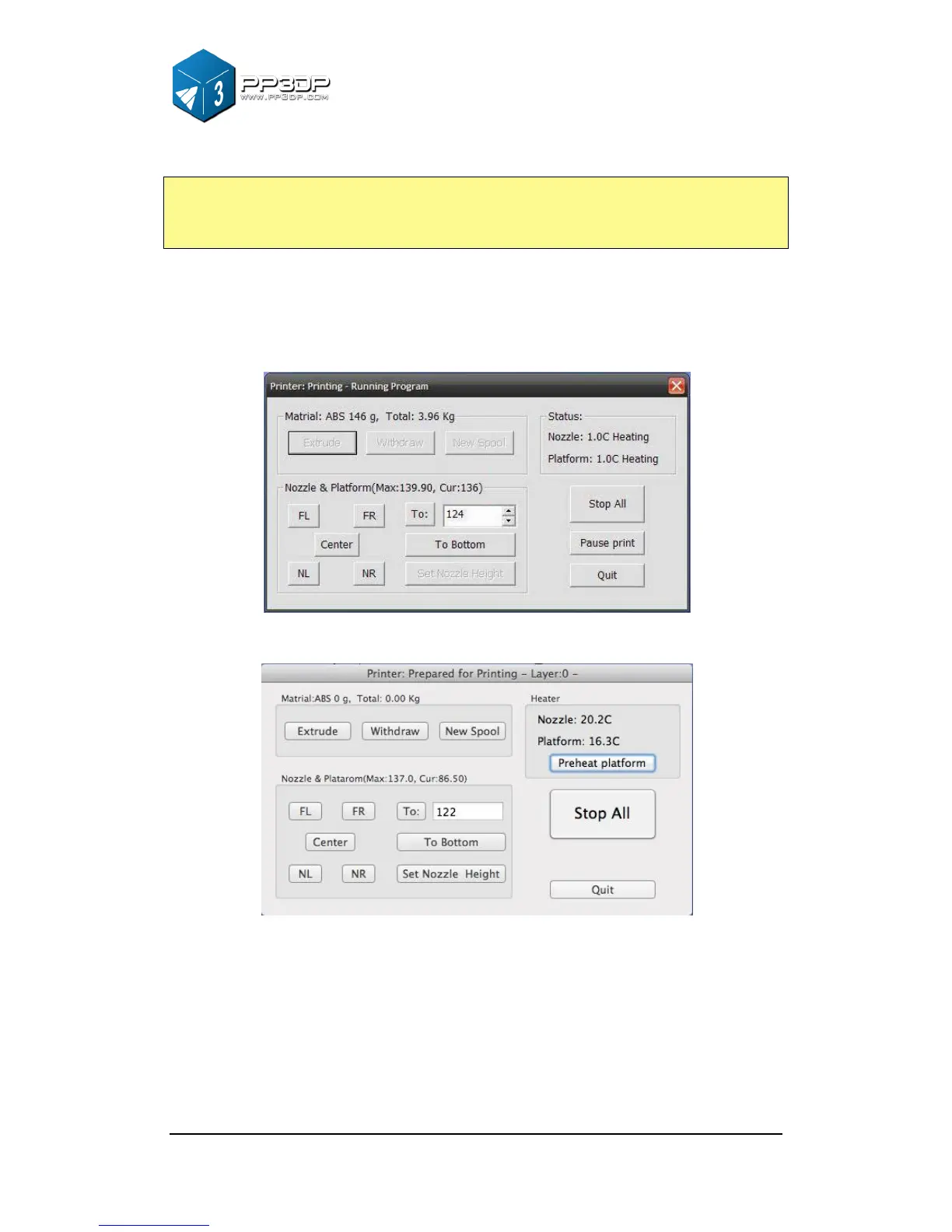 Extrude: Extrudes material out of print nozzle. Click on this button, and the